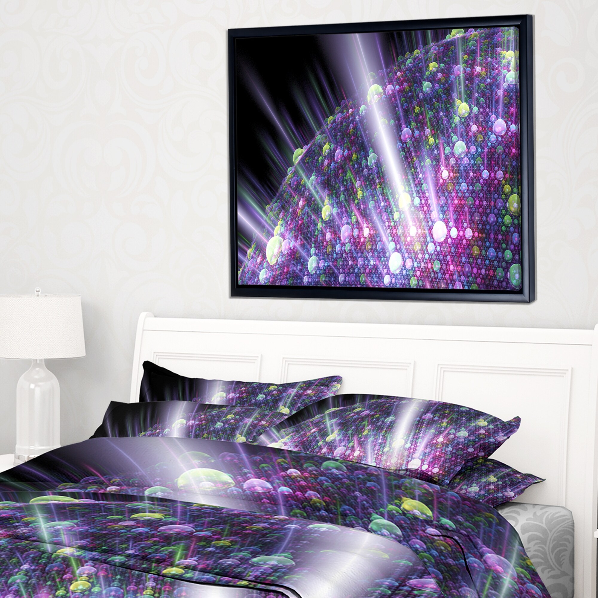 Designart "Purple Solar Bubbles Planet" Abstract Framed Canvas Art Print