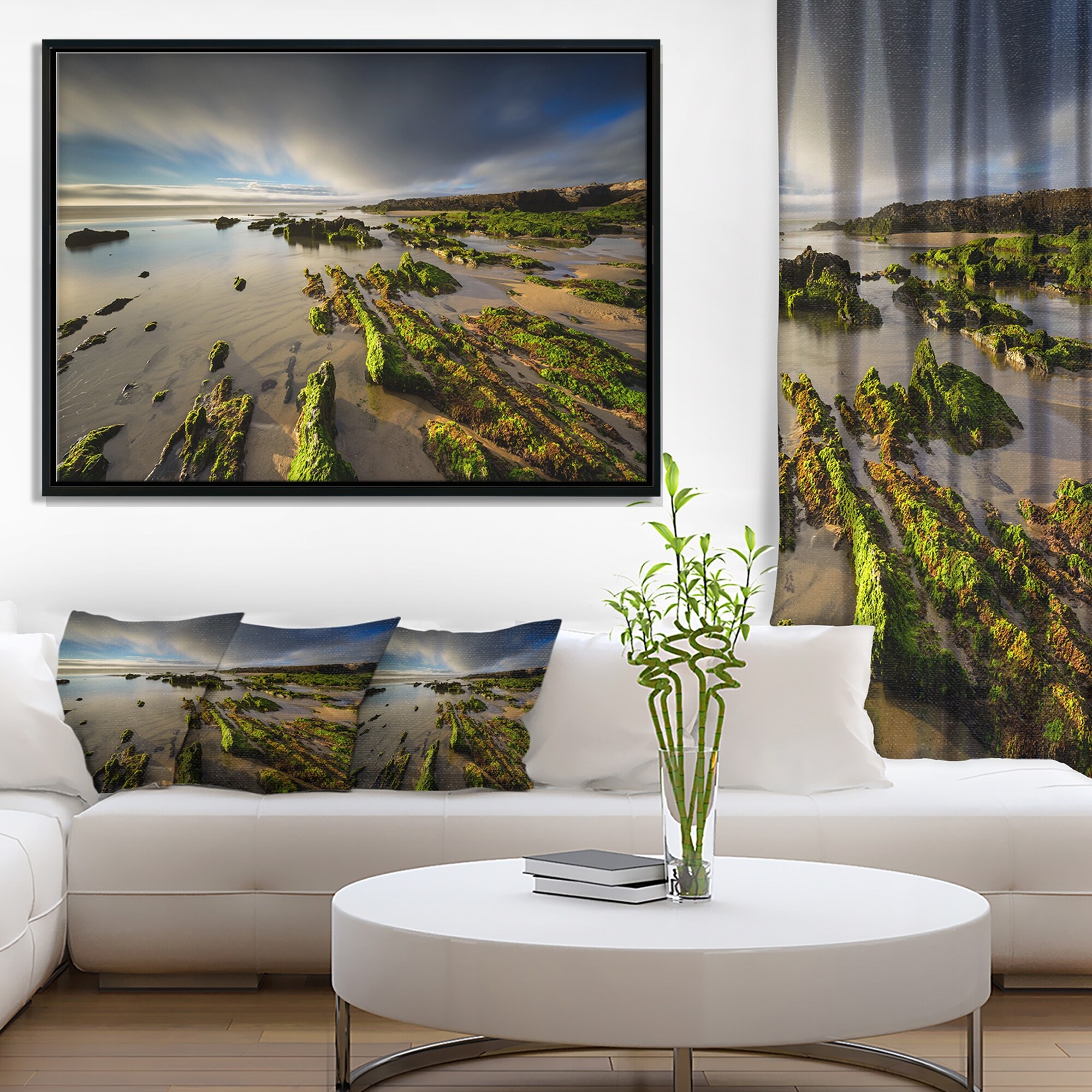 Designart "Bay of Biscay Spain Seashore" Landscape Framed Canvas Art