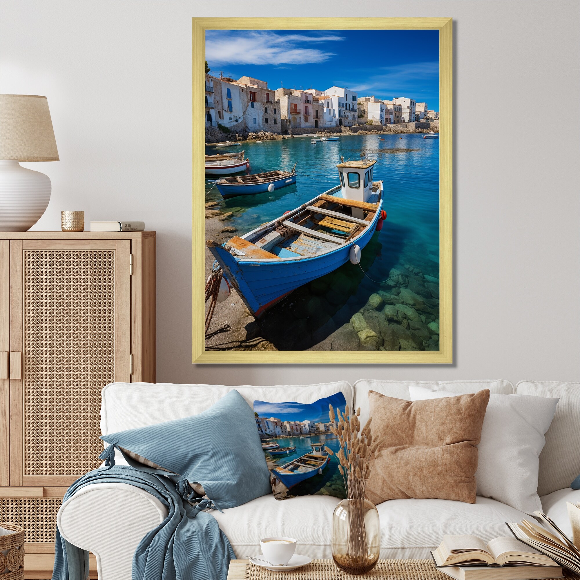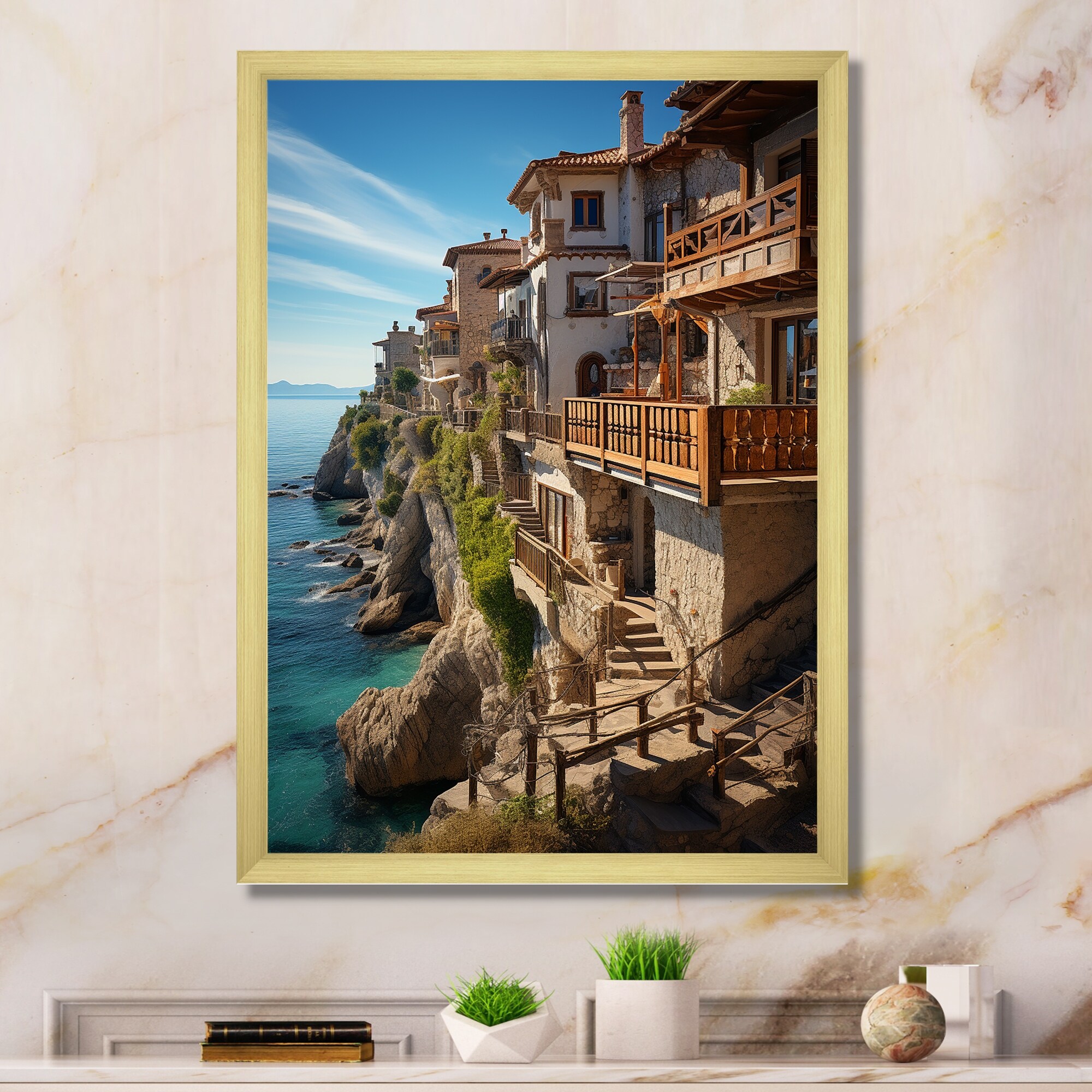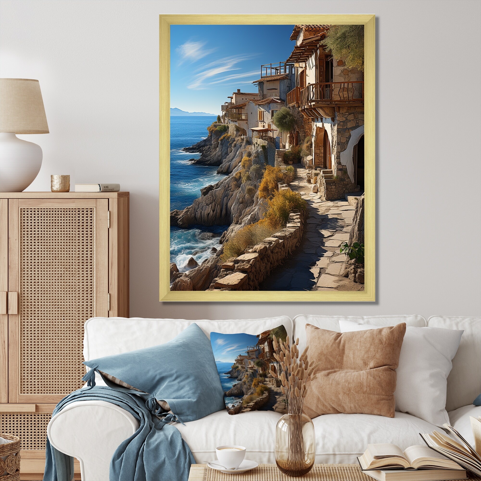 Designart "Spain Coastal Fishing Village II" Spain Framed Wall Art Living Room
