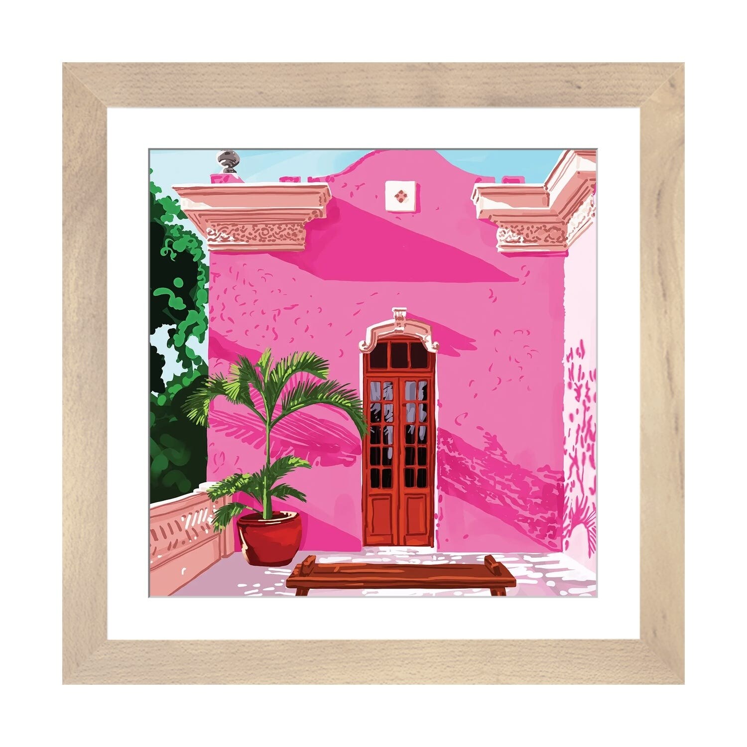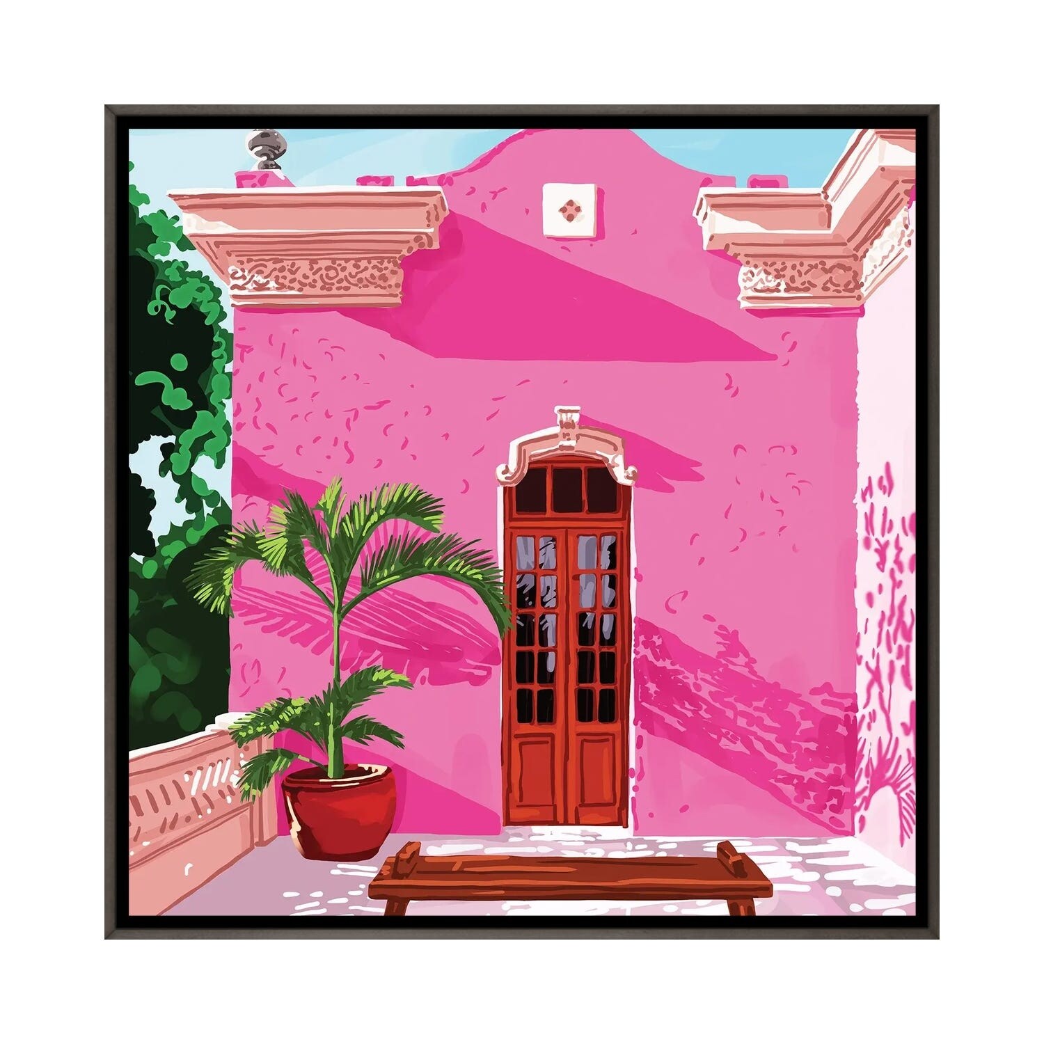 iCanvas "Pink Building, Exotic Modern Architecture, Travel Cities, Morocco, Tropical Spain Illustration" by 83 Oranges Framed