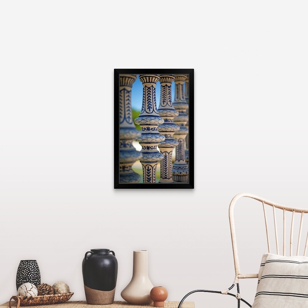 "Blue and white ceramic fence, Seville, Andalucia Spain." Black Framed Print