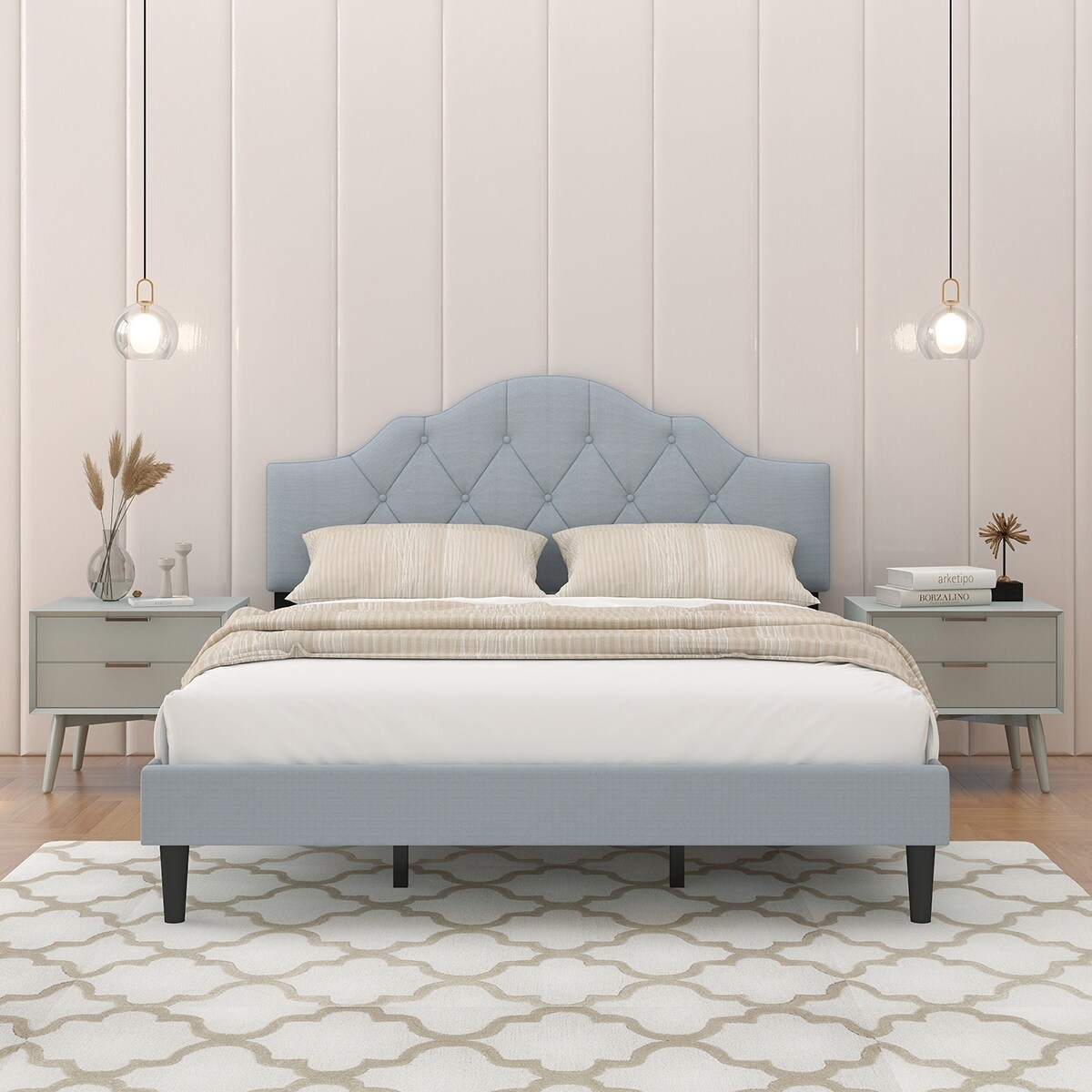 Upholstered Platform Bed Frame with Modern Adjustable Headboard, No Box Spring Needed