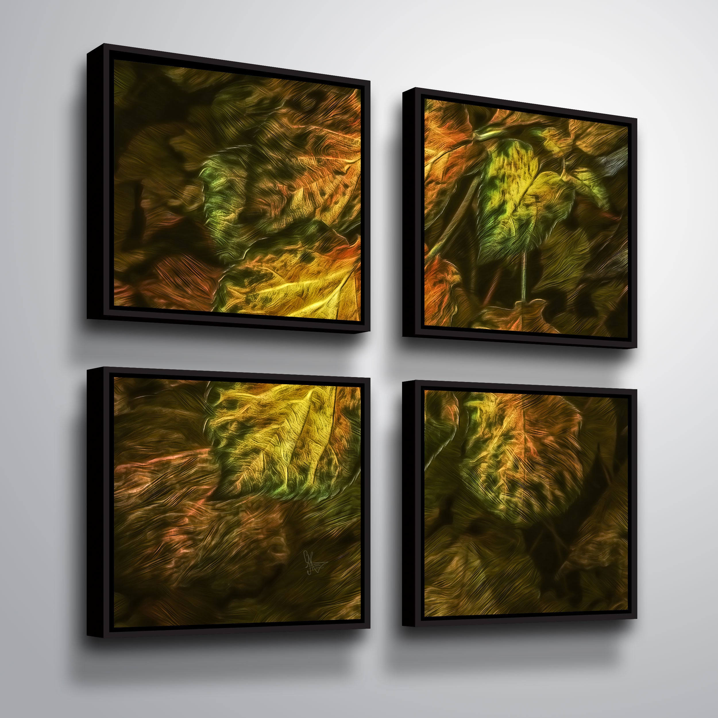 Scott Medwetz 'Golden Brown Leaves' 4-piece Floating-framed Square Canvas Wall Art Set