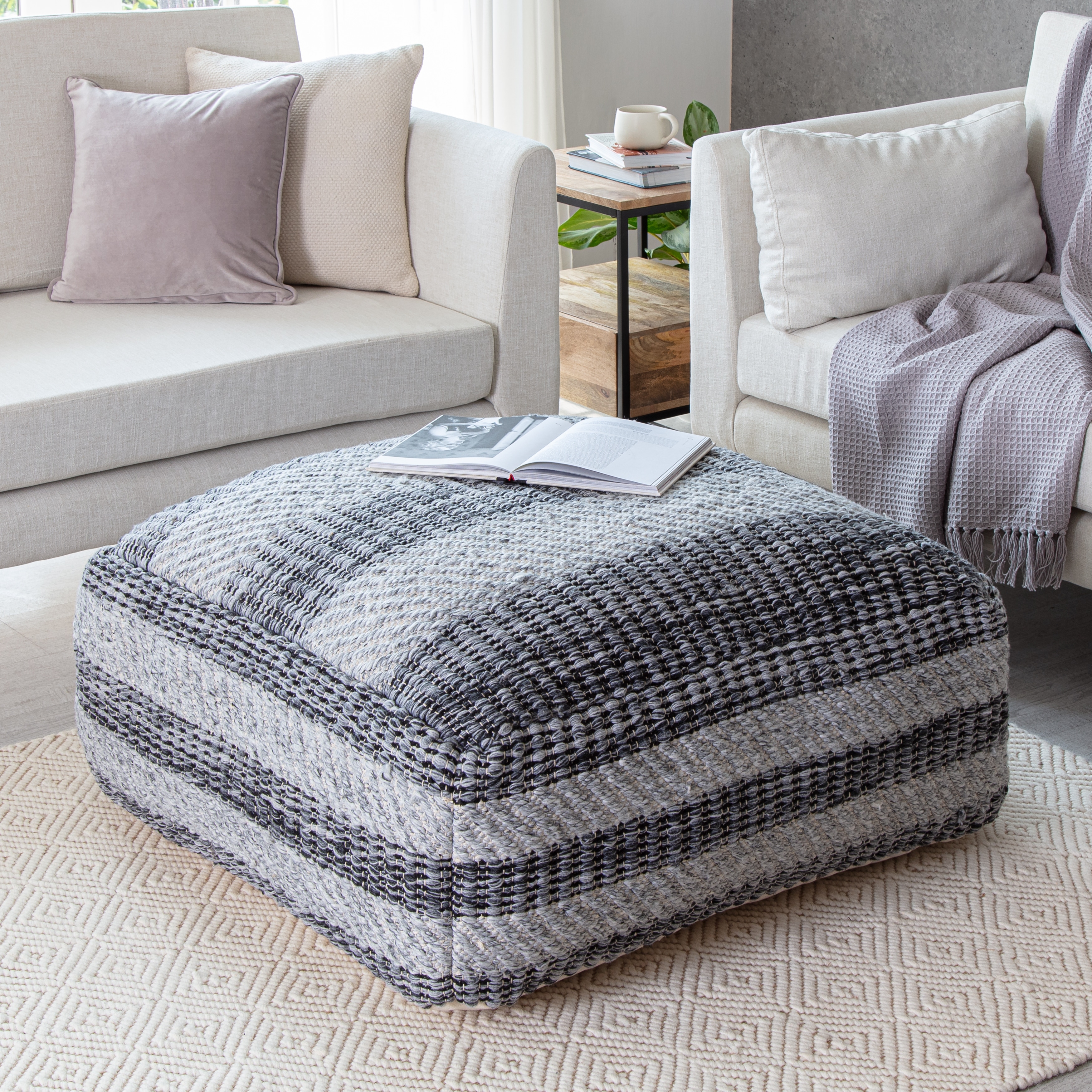 Jani Honolua 34" Gray Square Oversized Pouf Ottoman