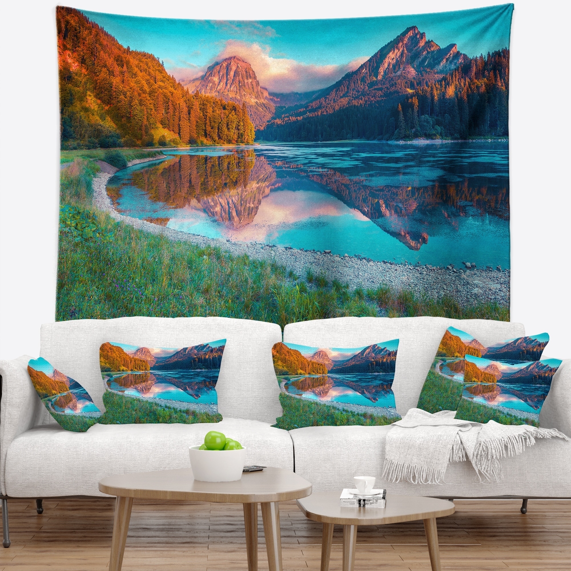 Designart 'Fantastic Swiss Lake at Sunset in Brienz' Seascape Wall Tapestry