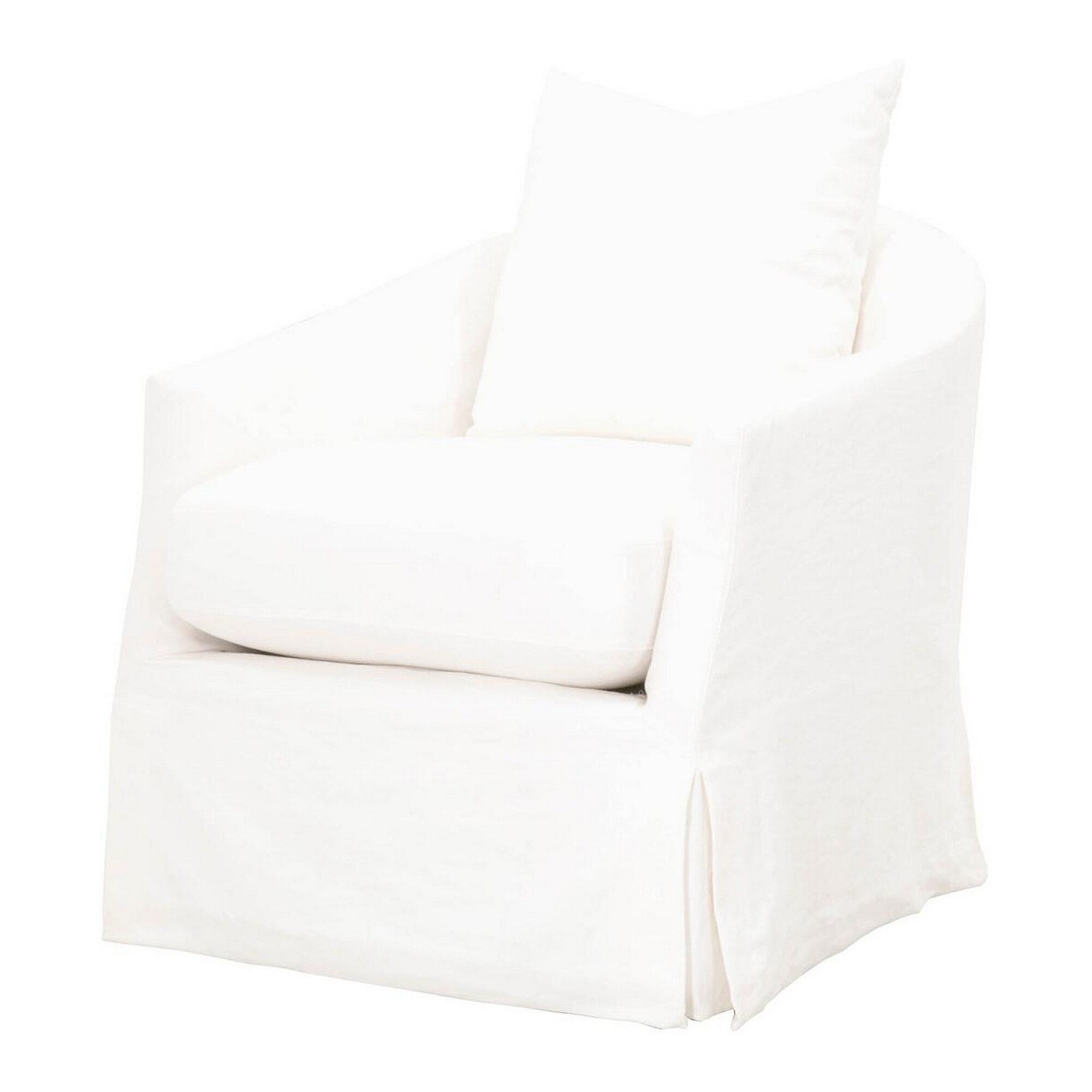 Slipcover Swivel Club Chair with 1 Square Throw Pillow, White