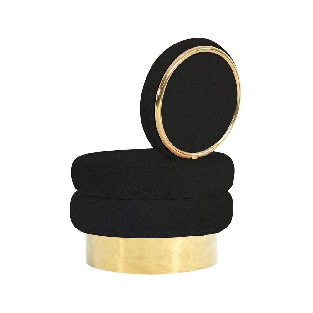 Cid 26 Inch Modern Swivel Accent Chair, Black Velvet, Round Gold Metal Base
