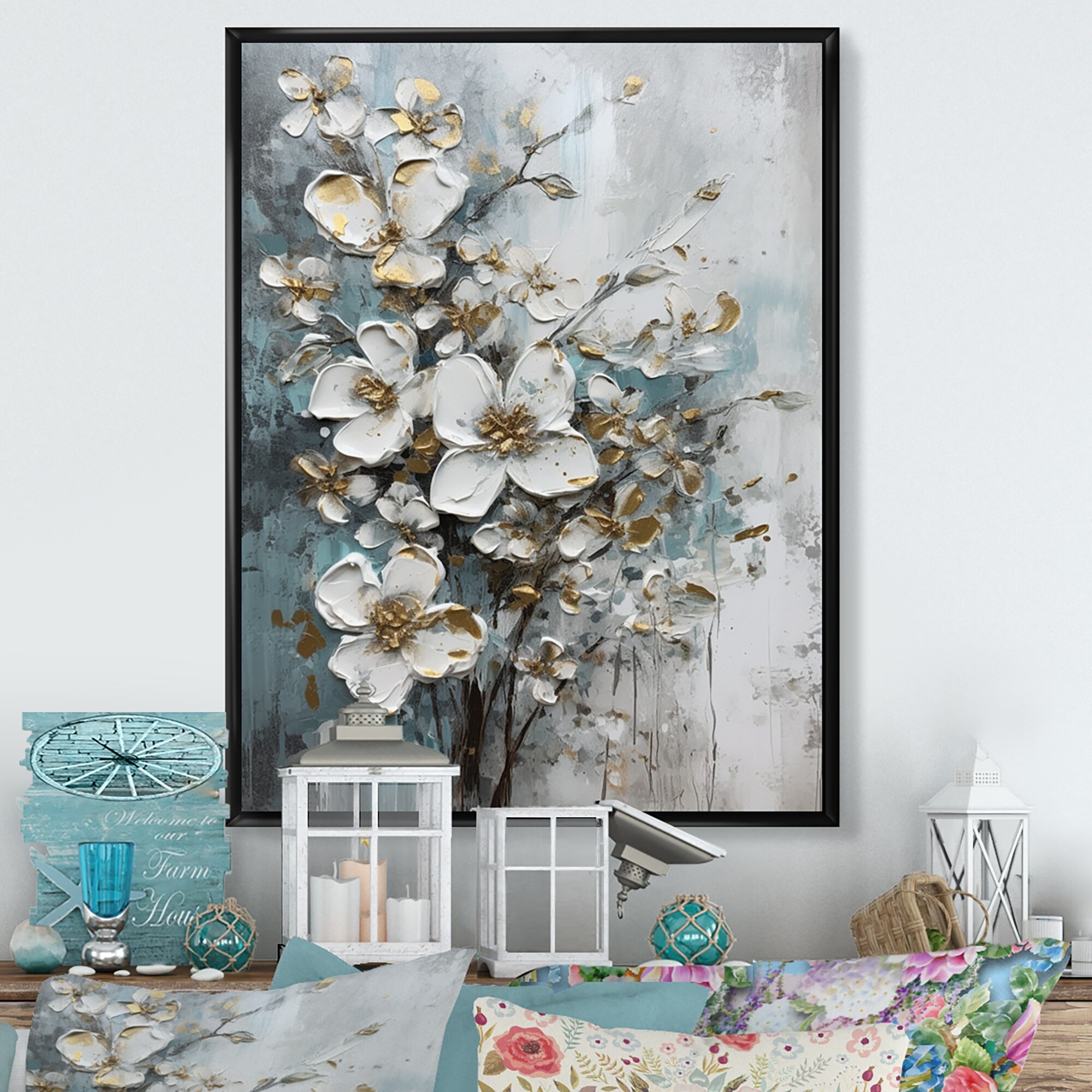 Designart "White Gold Apple Tree Symphony Ii" Floral Apple Tree Framed Canvas Wall Art