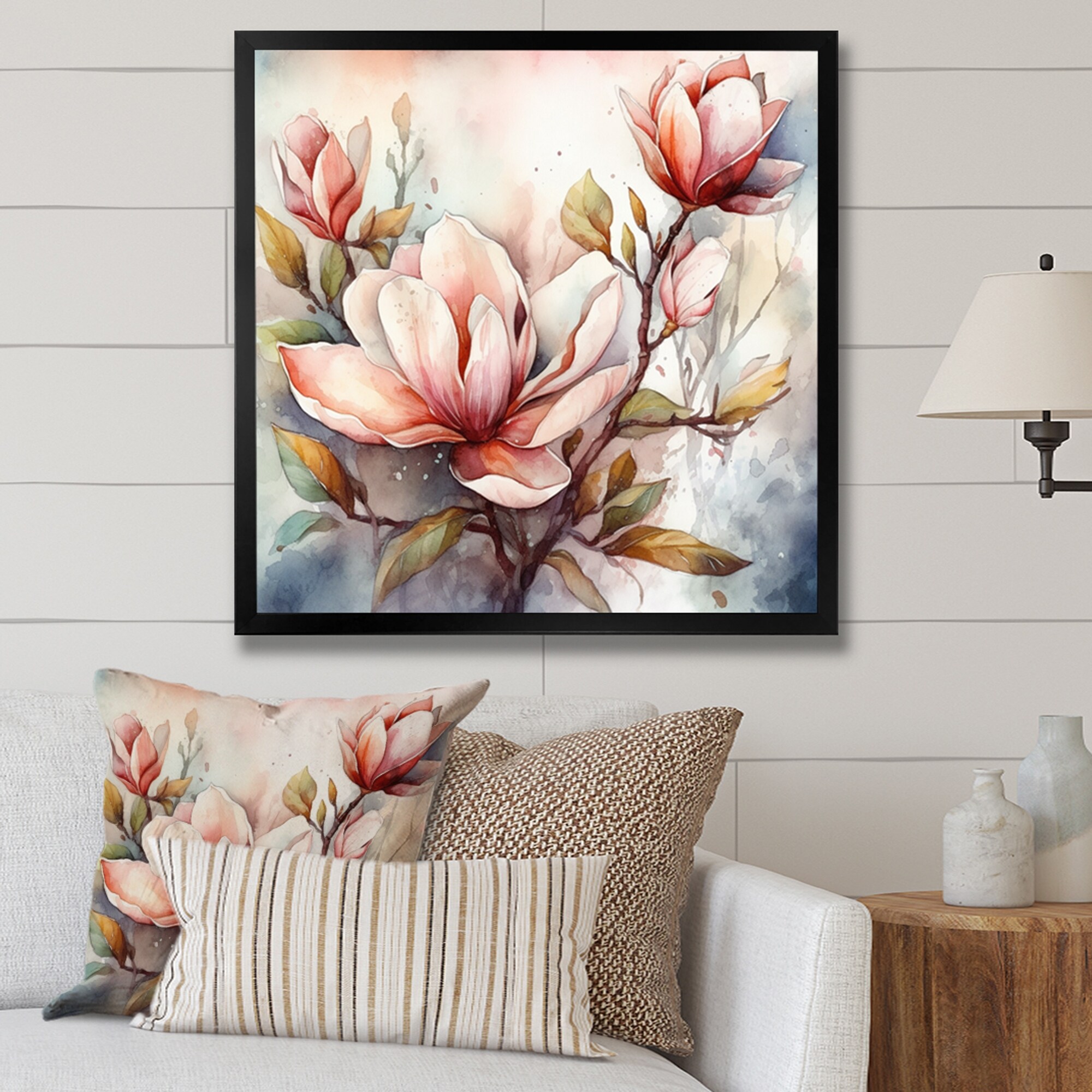 Designart "Red Magnolia Symphony" Floral Magnolias Framed Canvas Art Print