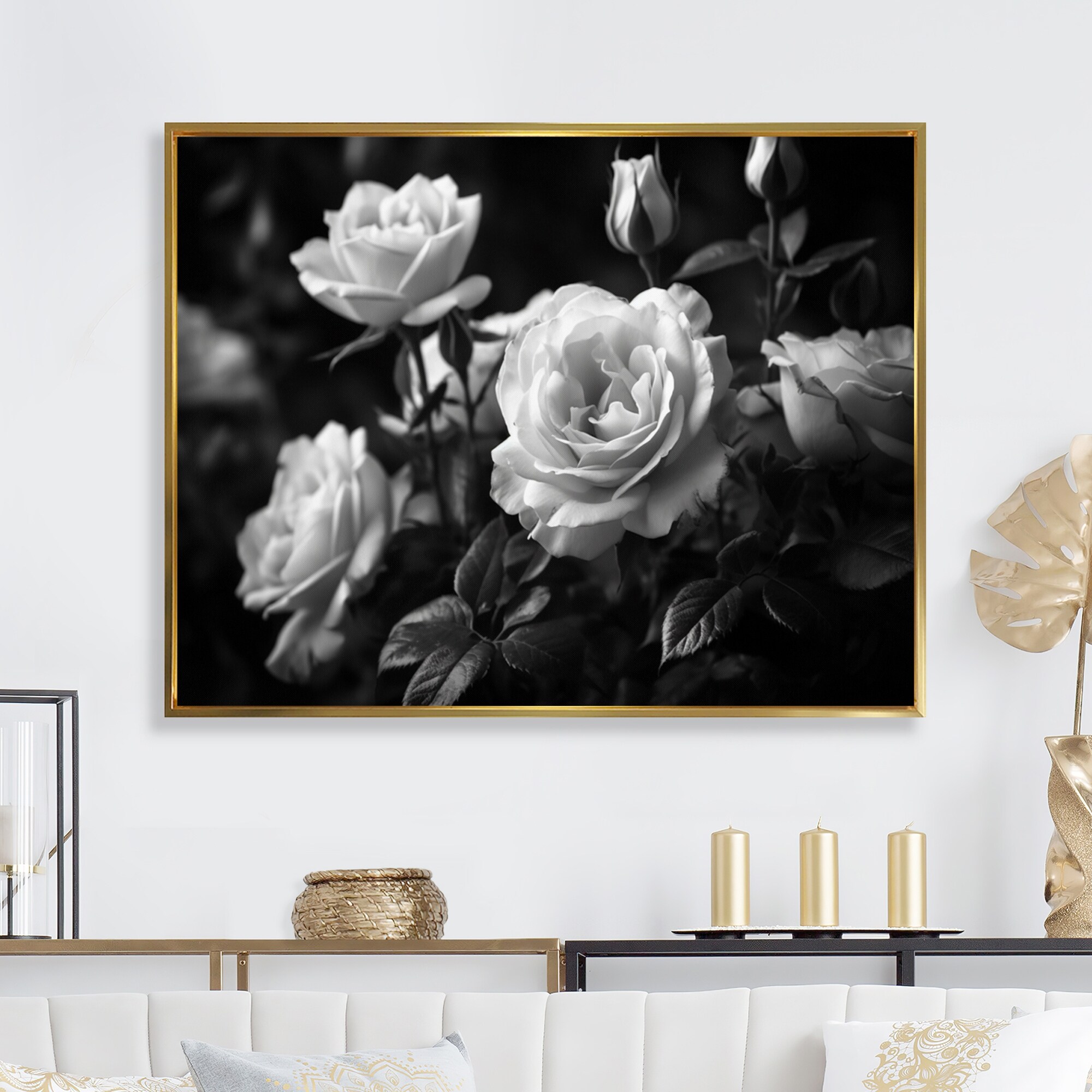 Designart "Grey Rose Symphony" Floral Rose Framed Wall Art Prints
