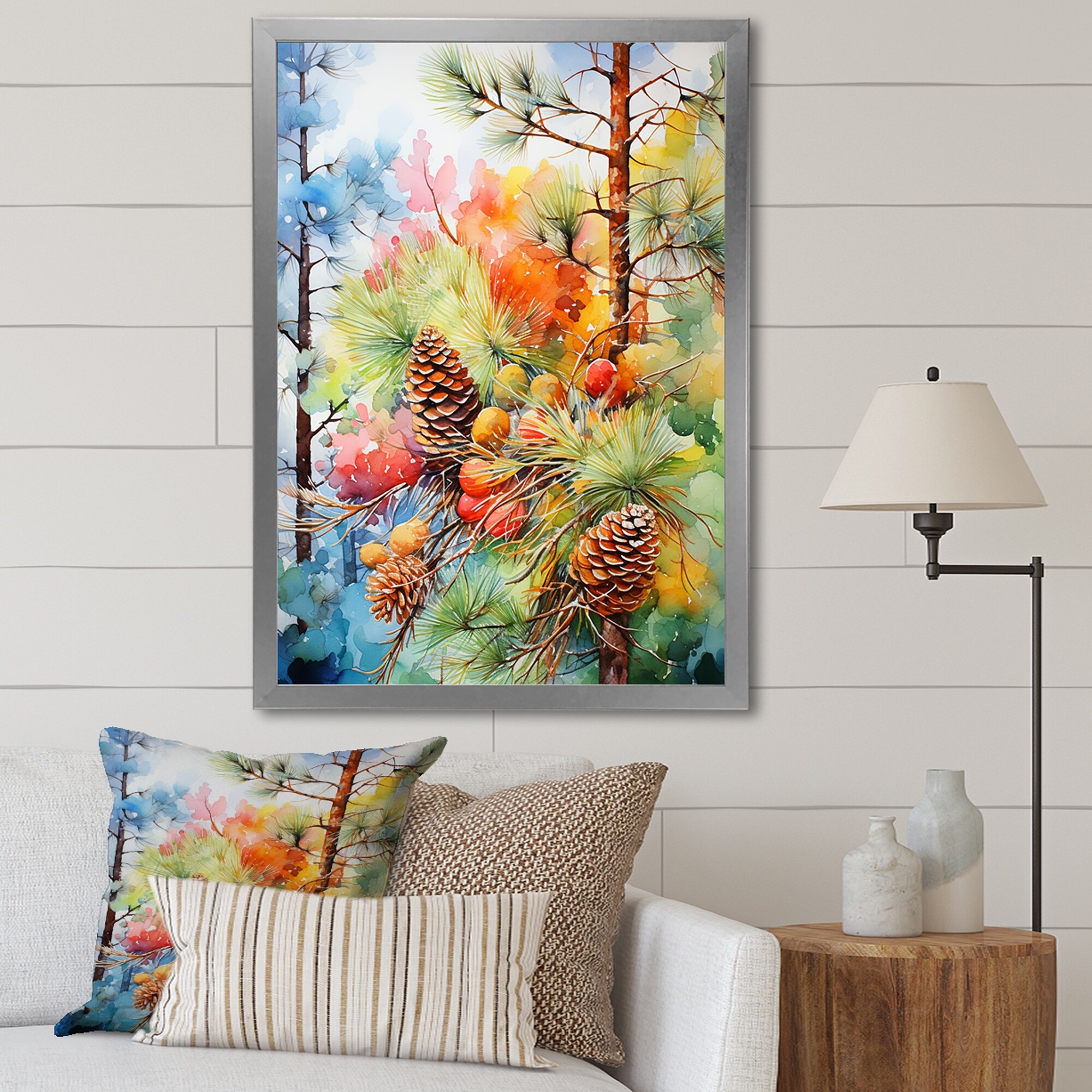 Designart "Pine Tree Autumn Symphony II" Tree Pine Framed Wall Art Living Room
