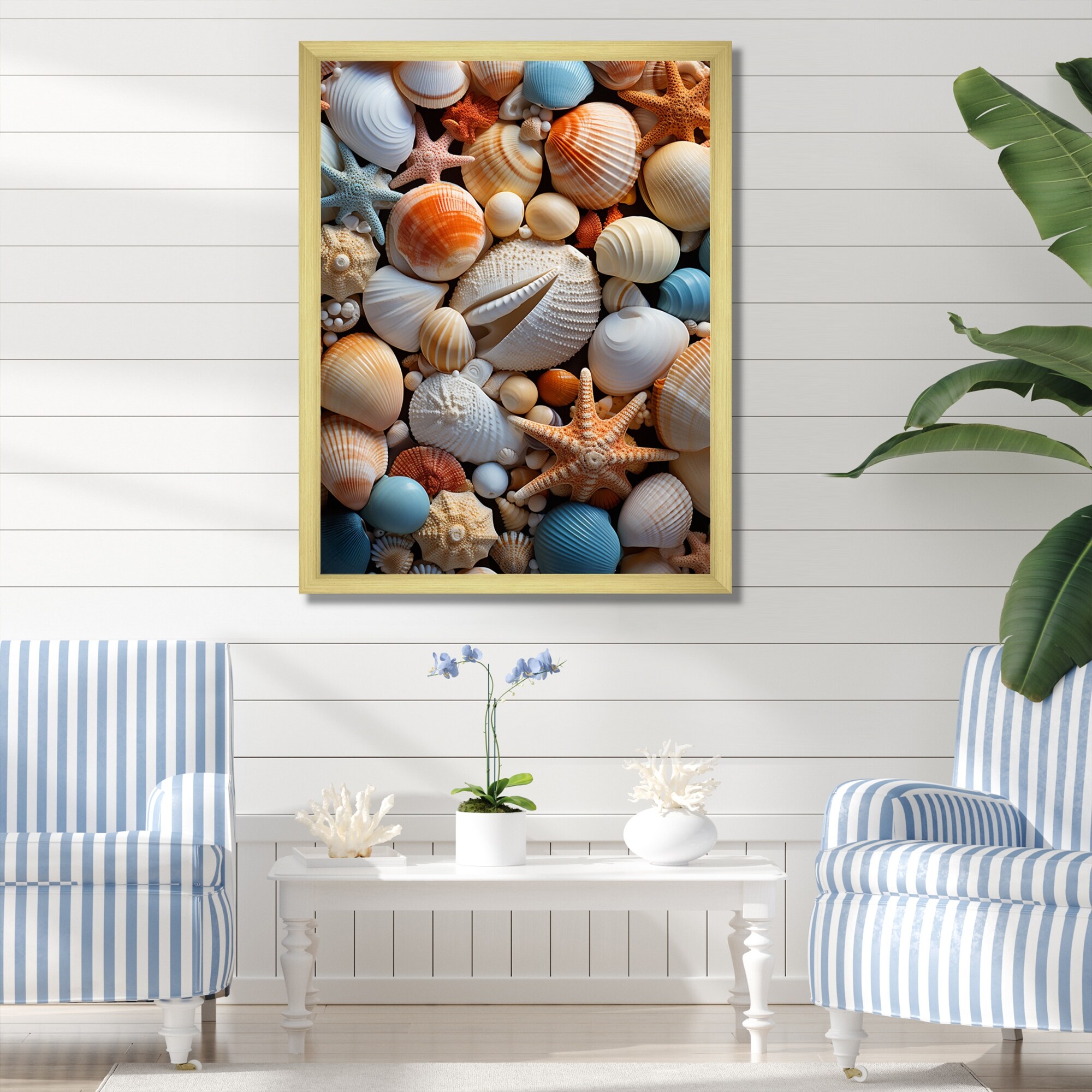 Designart "Beach Photo Seashell Symphony VII" Coastal Animal Framed Canvas Wall Art