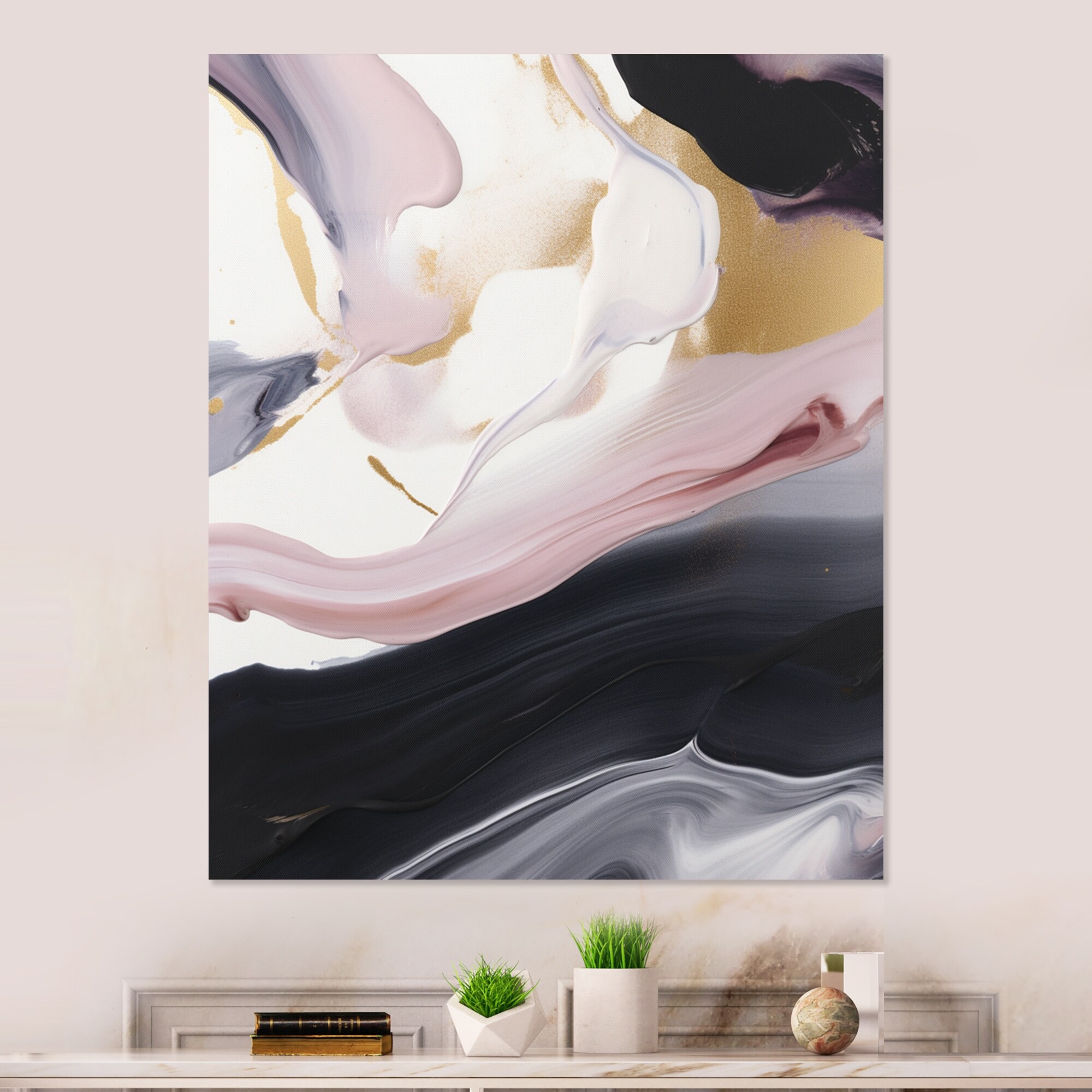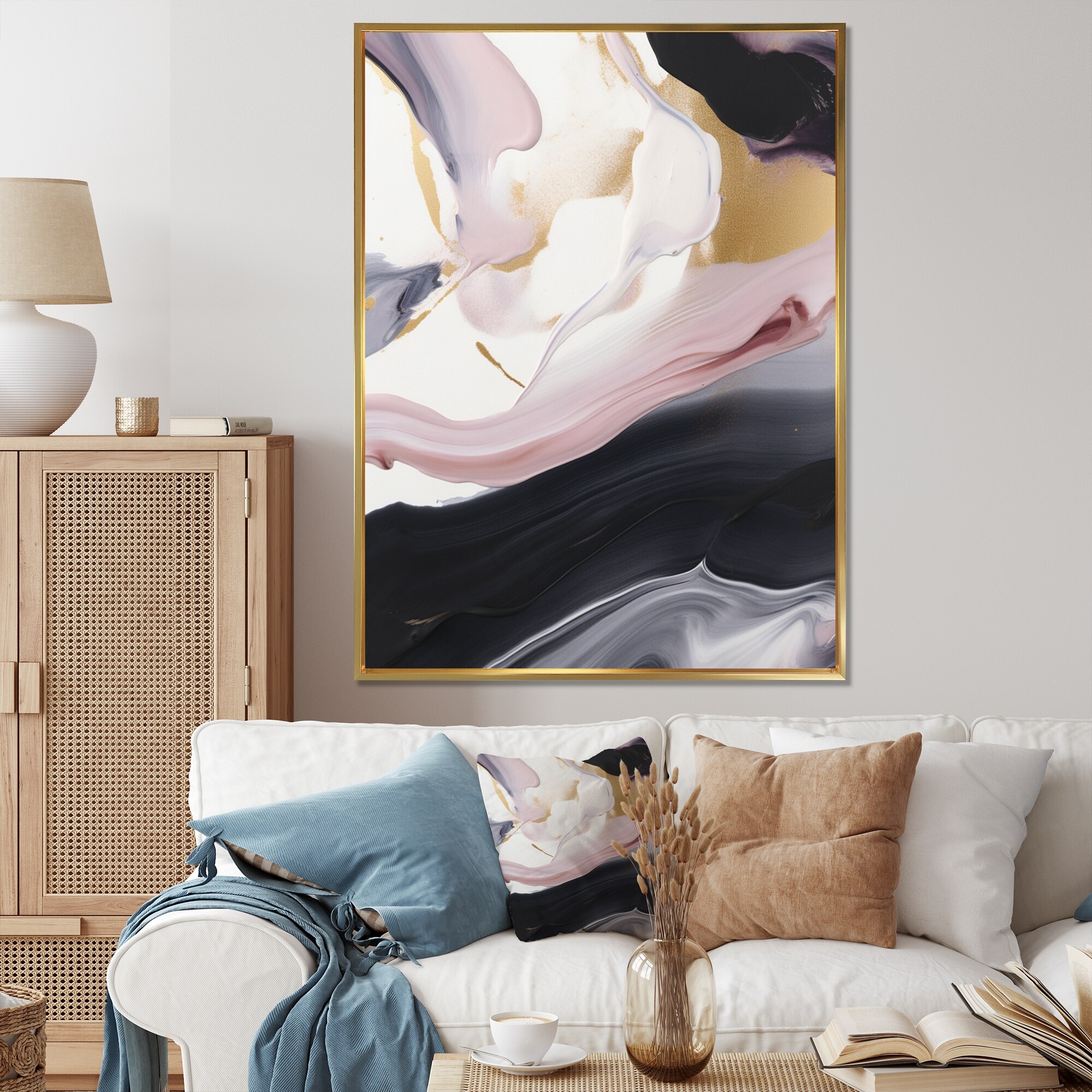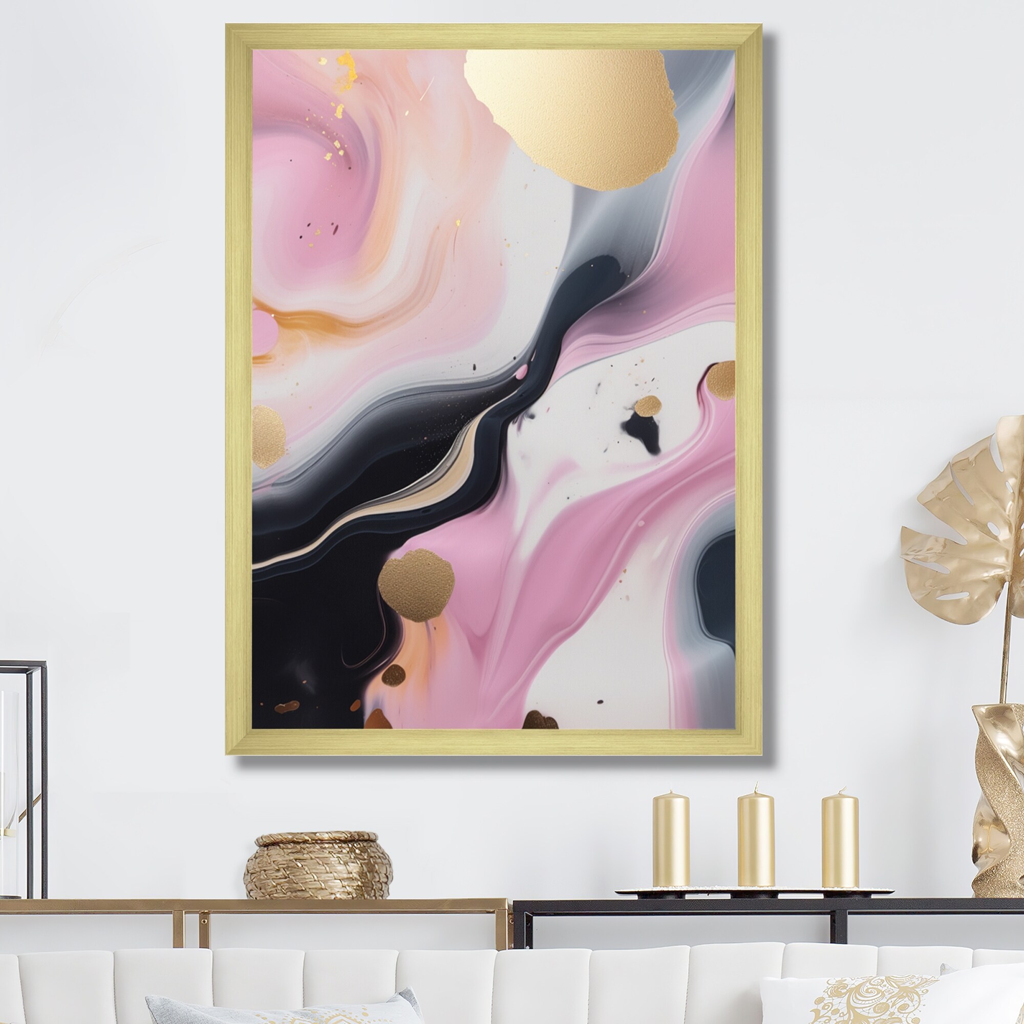 Designart "Pink And Gold Marble Symphony Ii" Abstract Marble Framed Canvas Wall Art