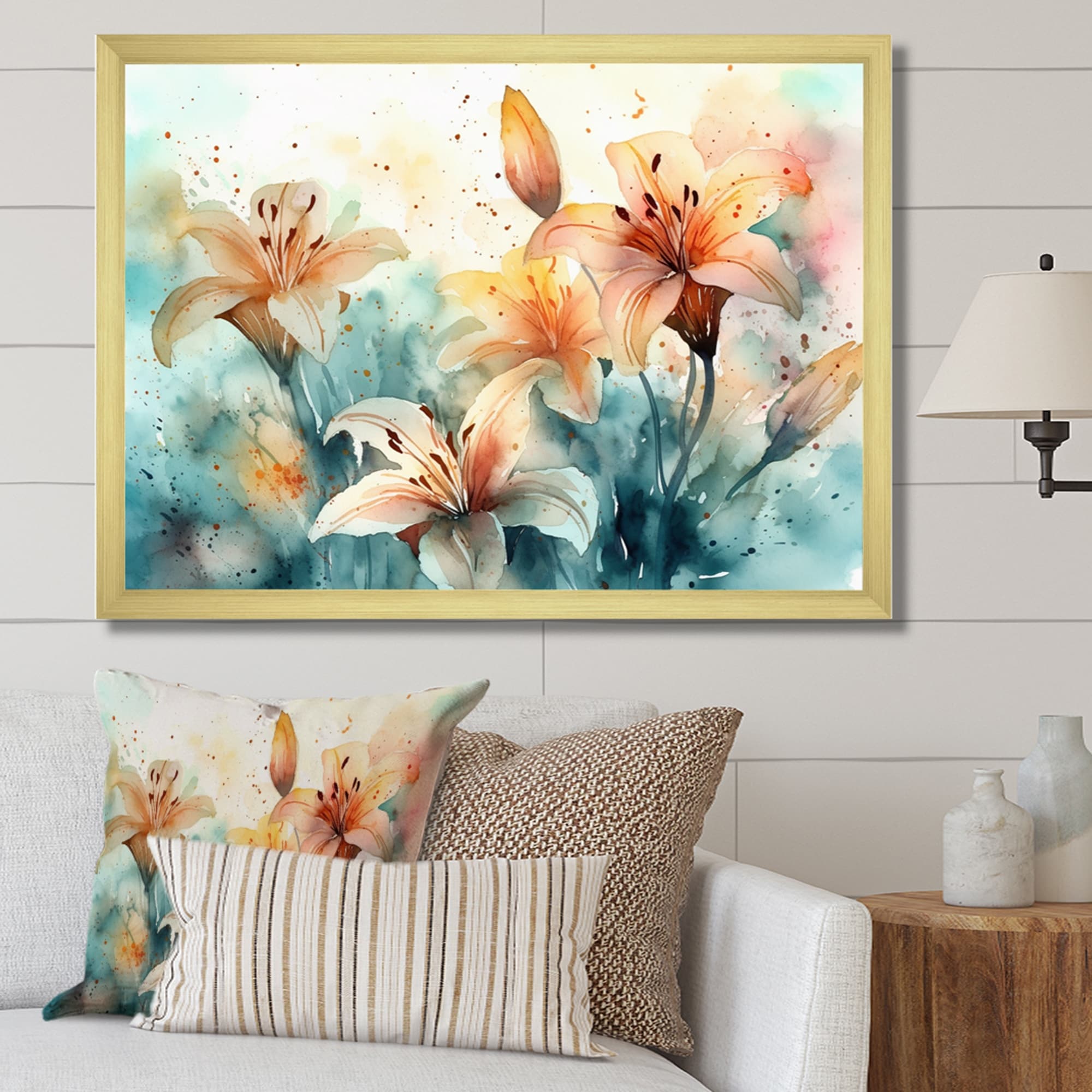 Designart "Orange Lily Symphony Ii" Floral Lily Framed Canvas Print