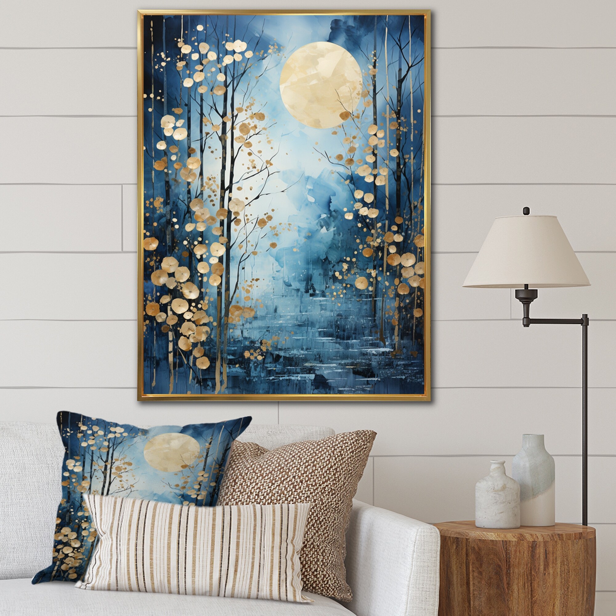 Designart "Birch Woods Moonlit Symphony II" Tree Birch Framed Wall Art Prints