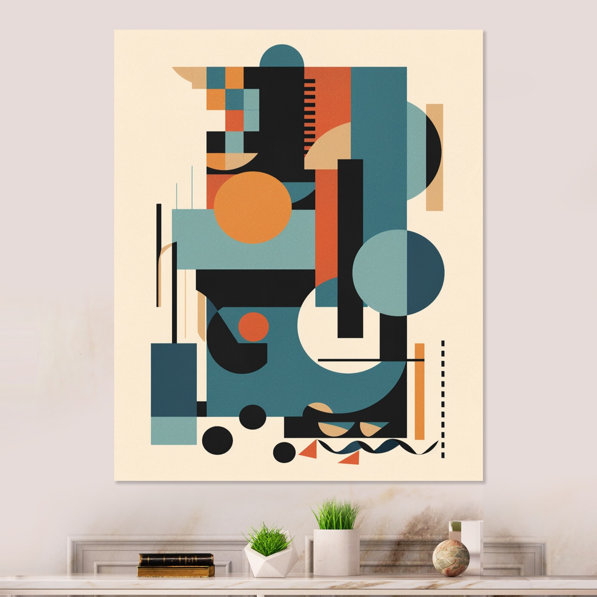 Designart "Grey Suprematism Geometric Symphony II" "Abstract Suprematism " Framed Wall Art Living Room