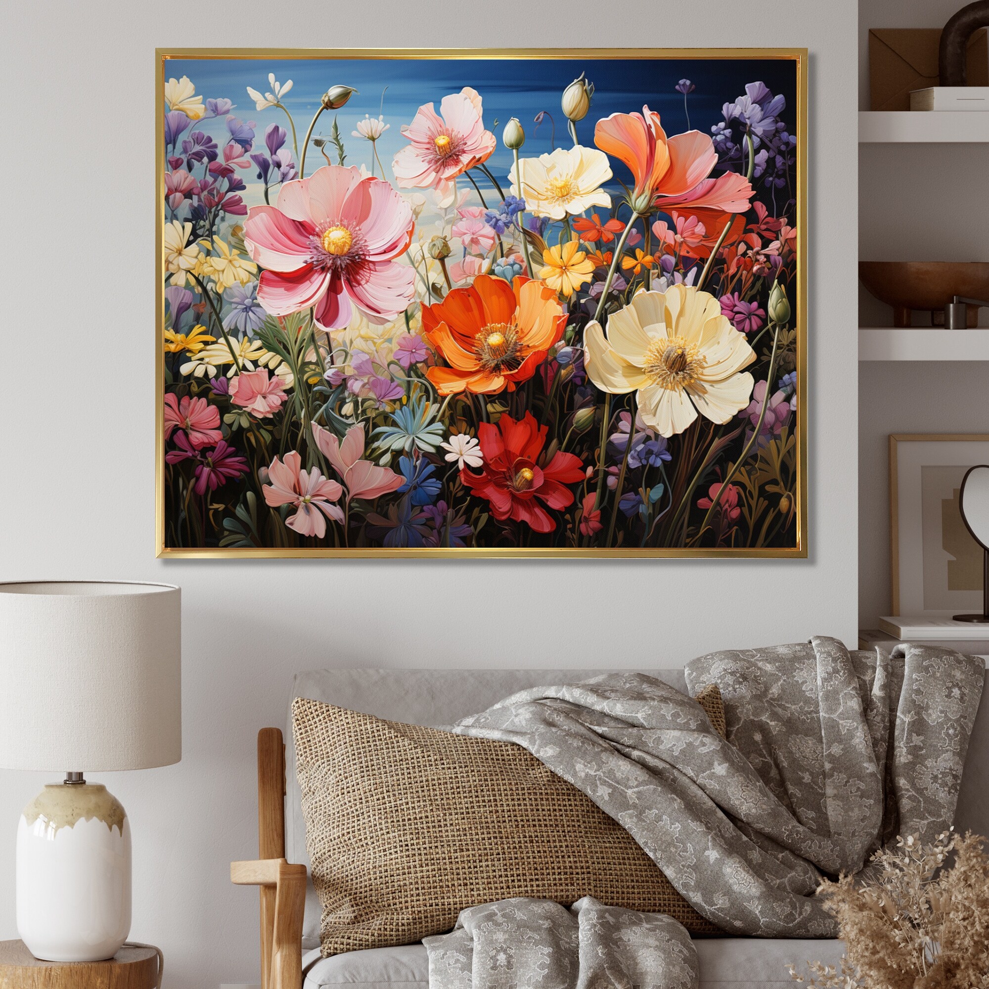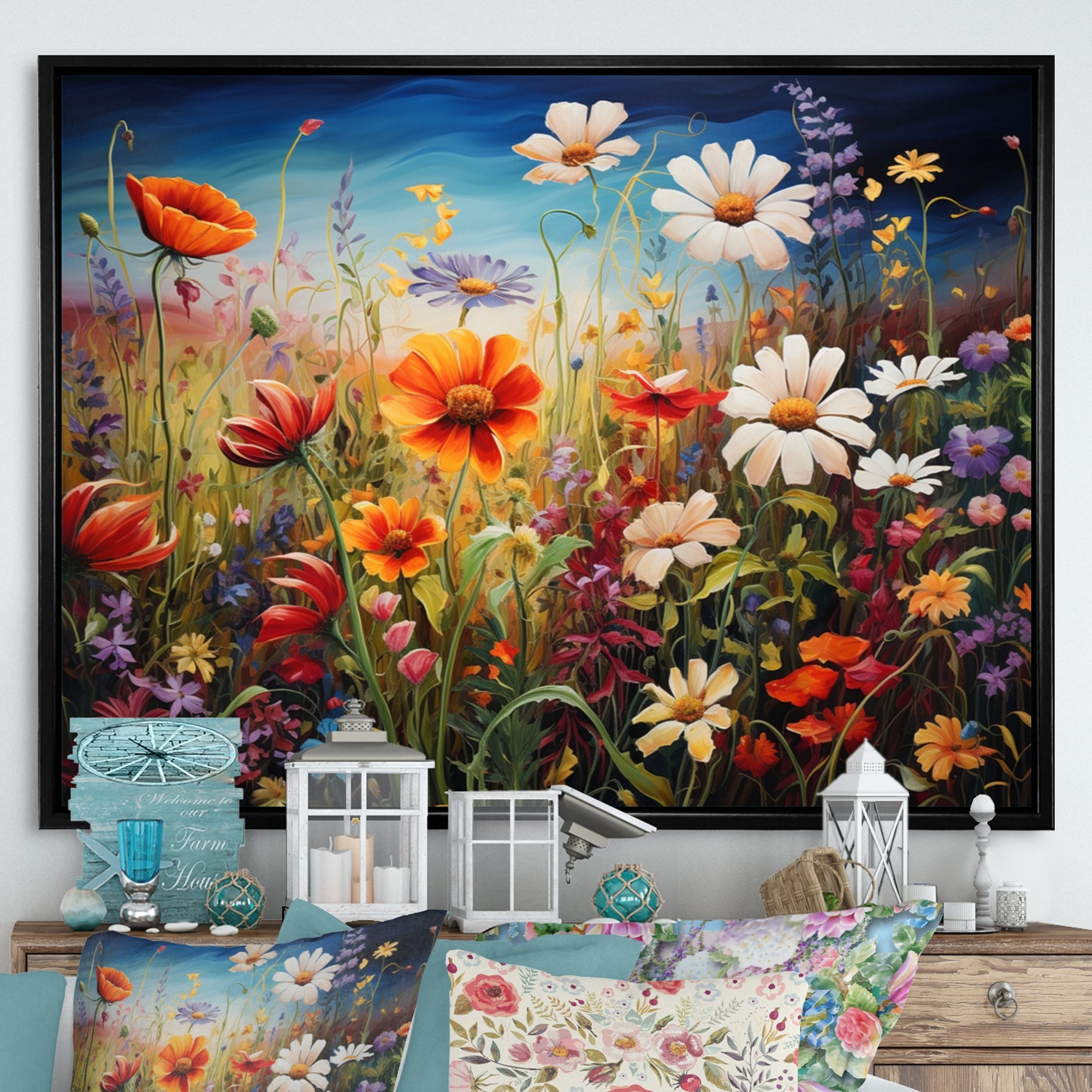 Designart "Wildflowers Symphony Field I" Wildflowers Framed Canvas Wall Art