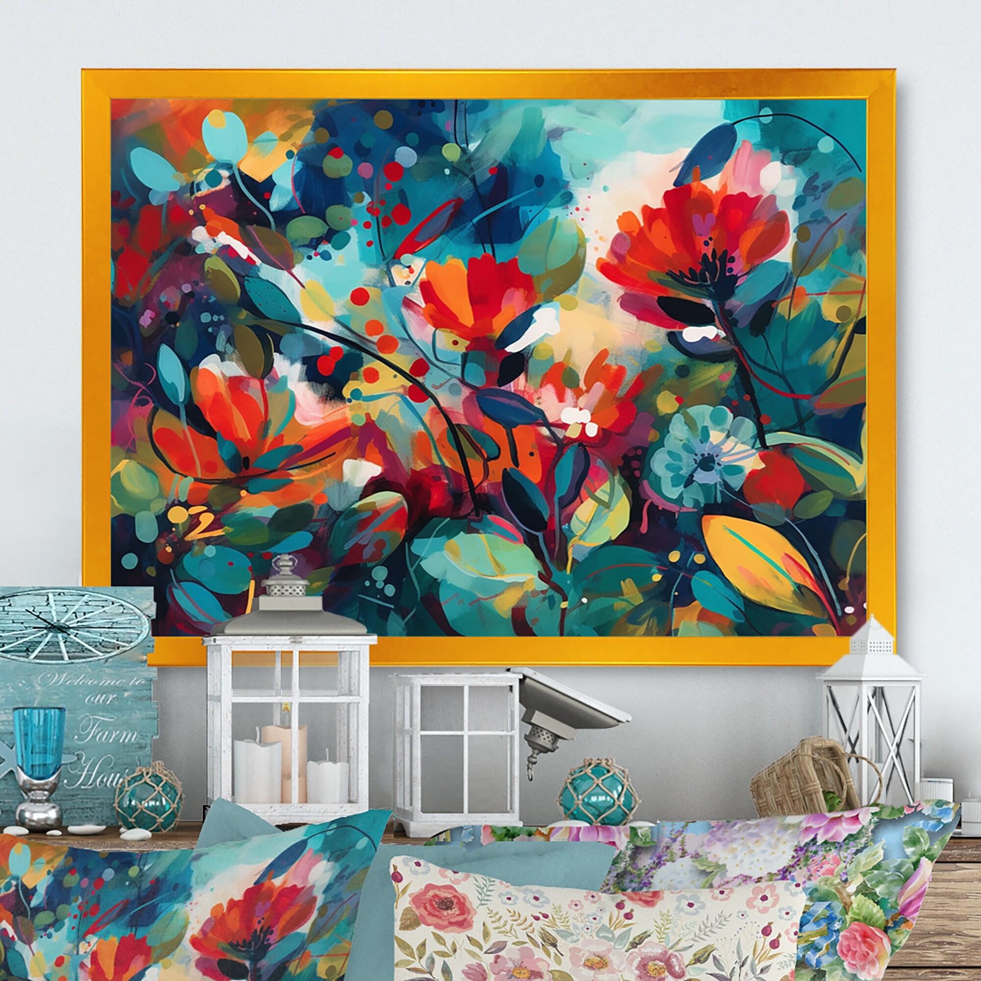 Designart "Red Vibrant Garden Symphony I" Floral Framed Wall Decor