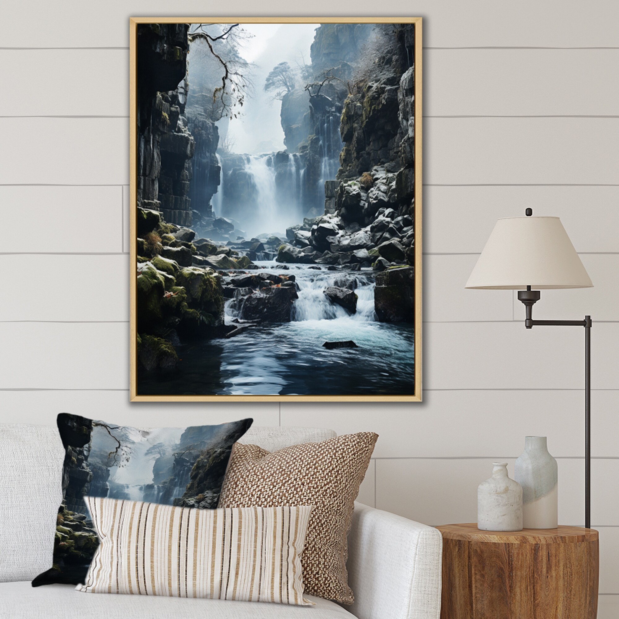 Designart "Grey White Waterfall Frozen Symphony II" Waterfall Framed Wall Decor