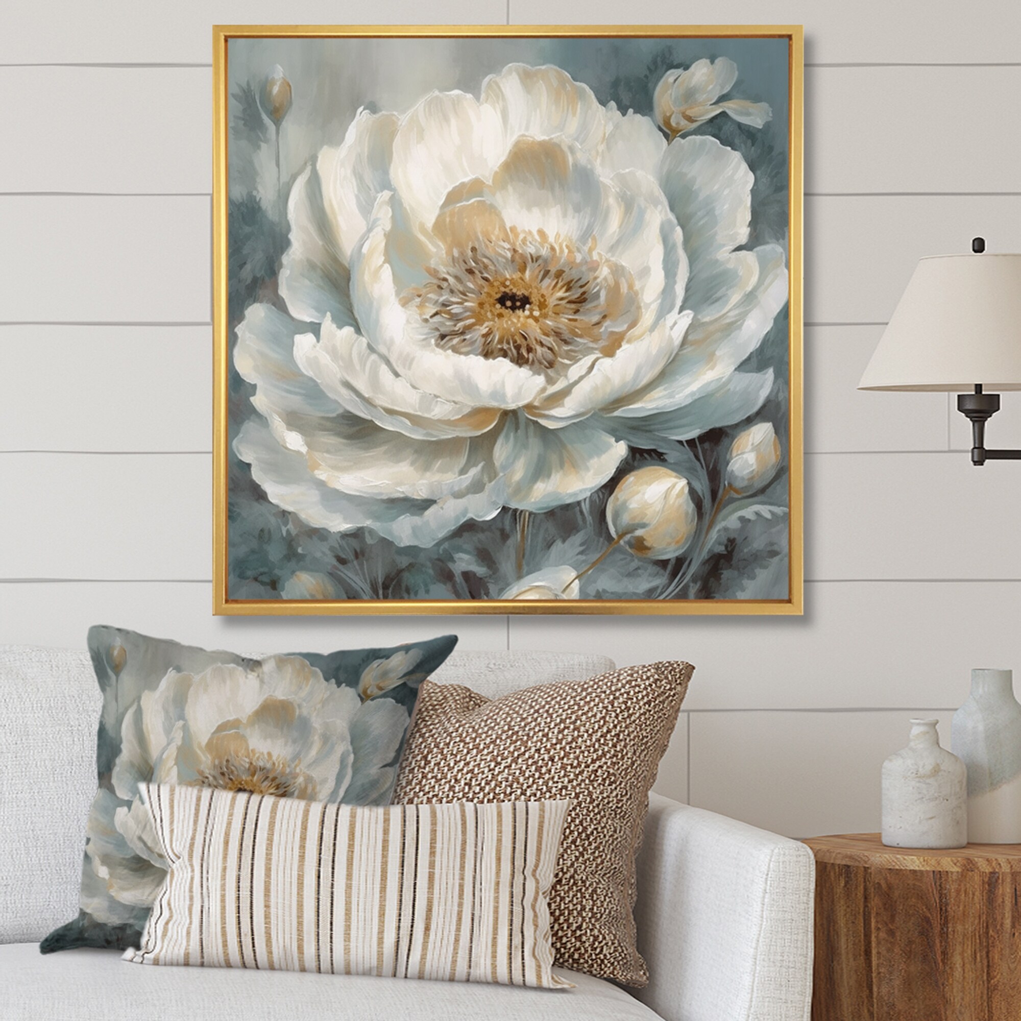 Designart "White Blue Peonies Symphony Ii" Floral Peony Framed Canvas Print
