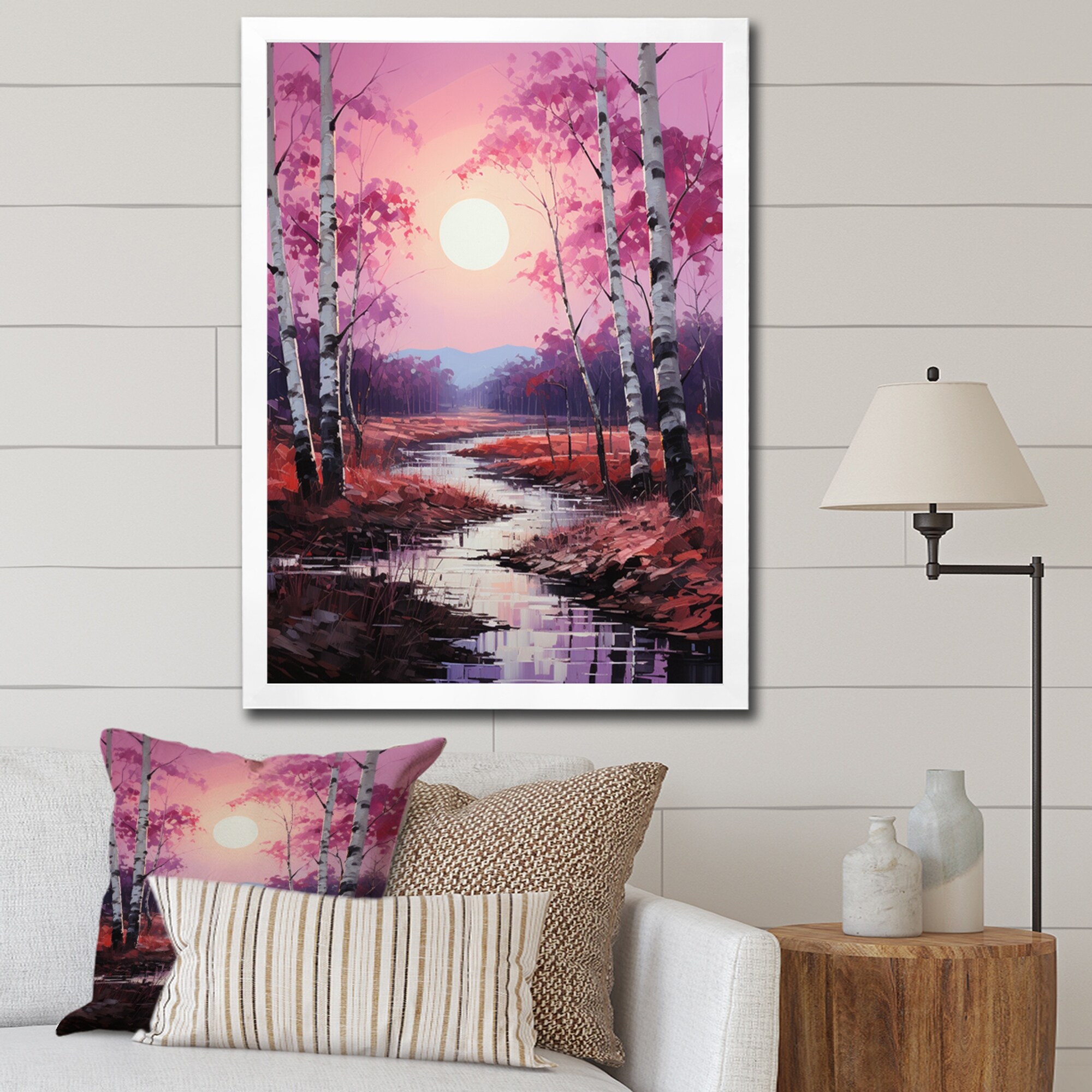 Designart "Birch Woods Pink Symphony II" Tree Birch Framed Canvas Wall Art