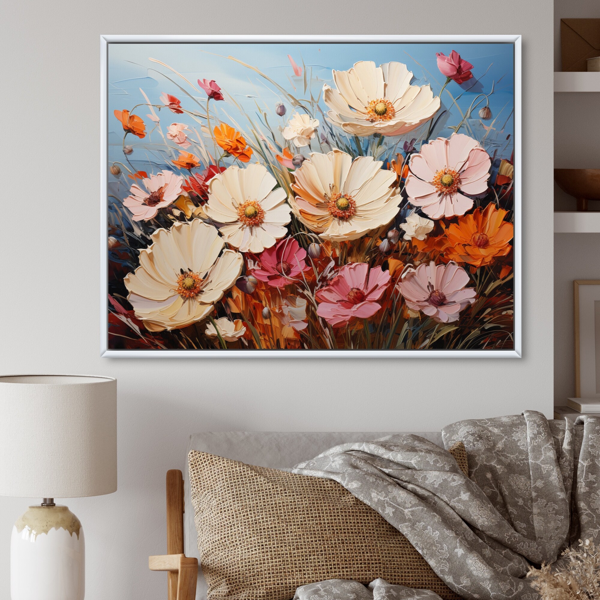 Designart "Pink White Wildflowers Symphony" Wildflowers Framed Canvas Print