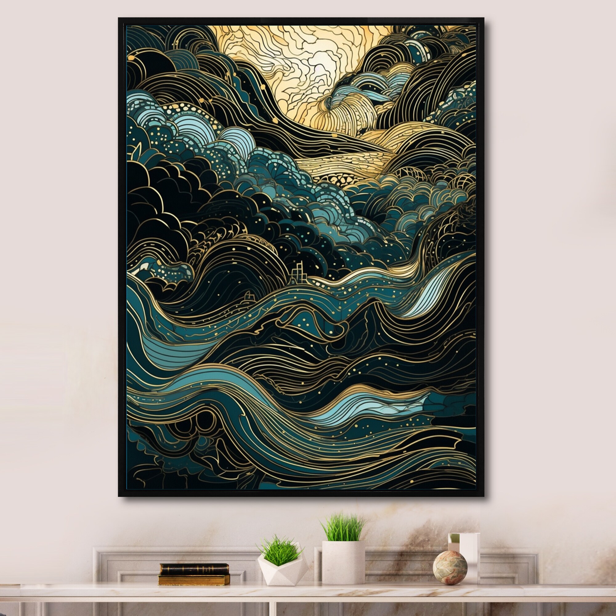 Designart "Colorful Storm Turbulent Symphony" Storms Framed Wall Art Living Room