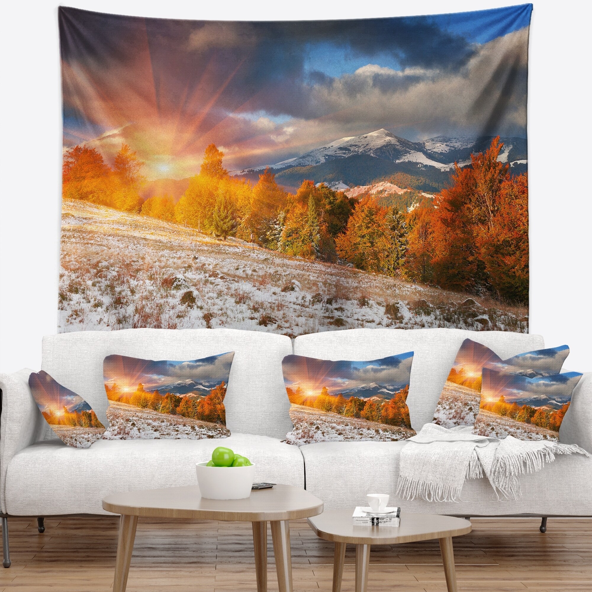 Designart 'First Snow in Carpathian Mountains' Landscape Photography Wall Tapestry