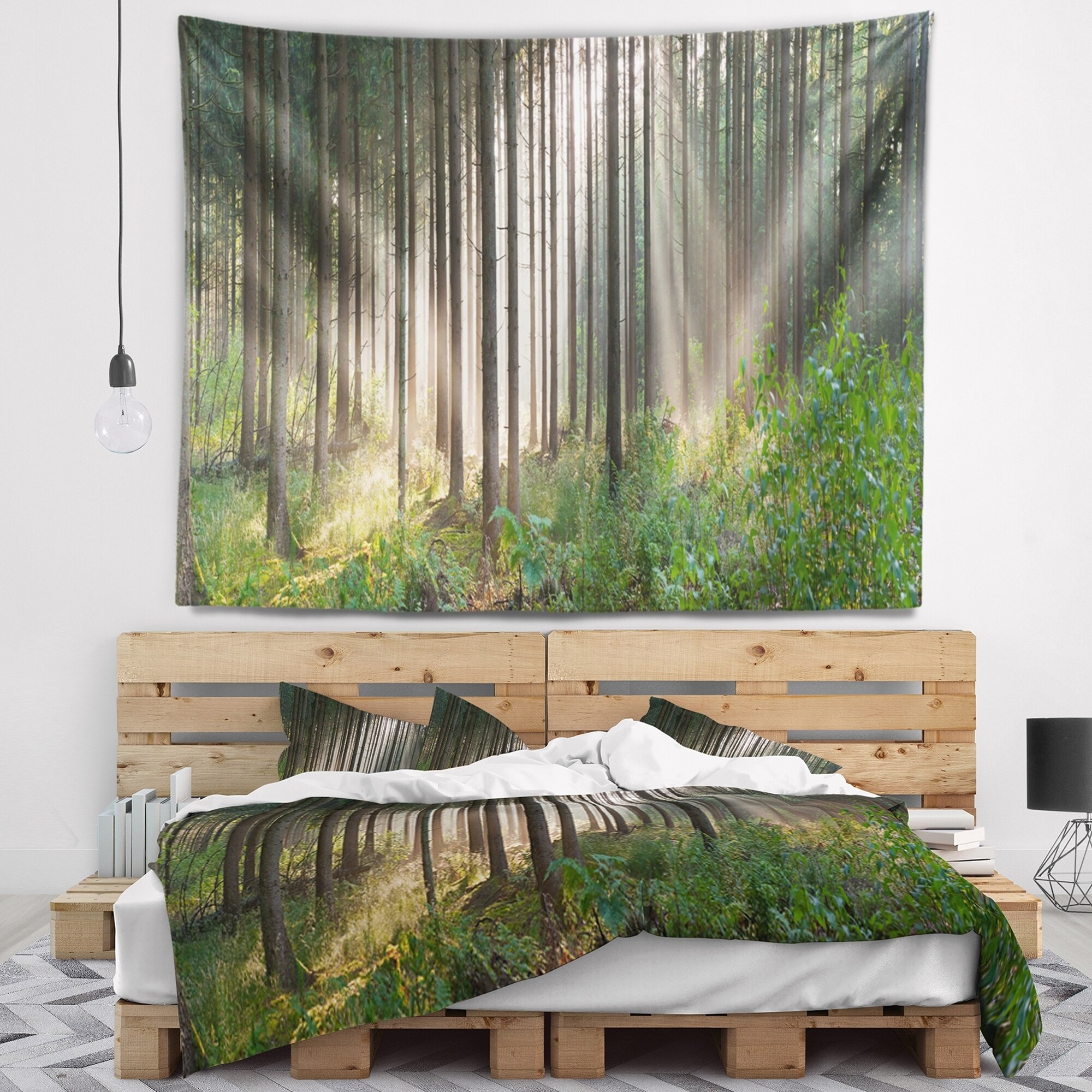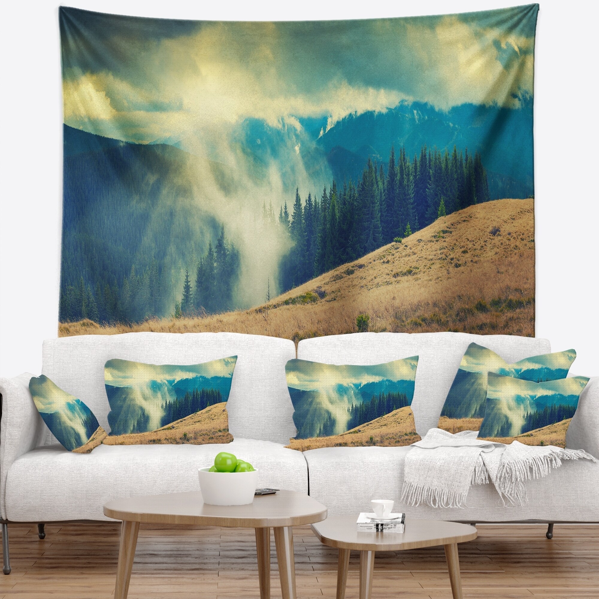 Designart 'Green Forest in Mist Panorama' Landscape Wall Tapestry