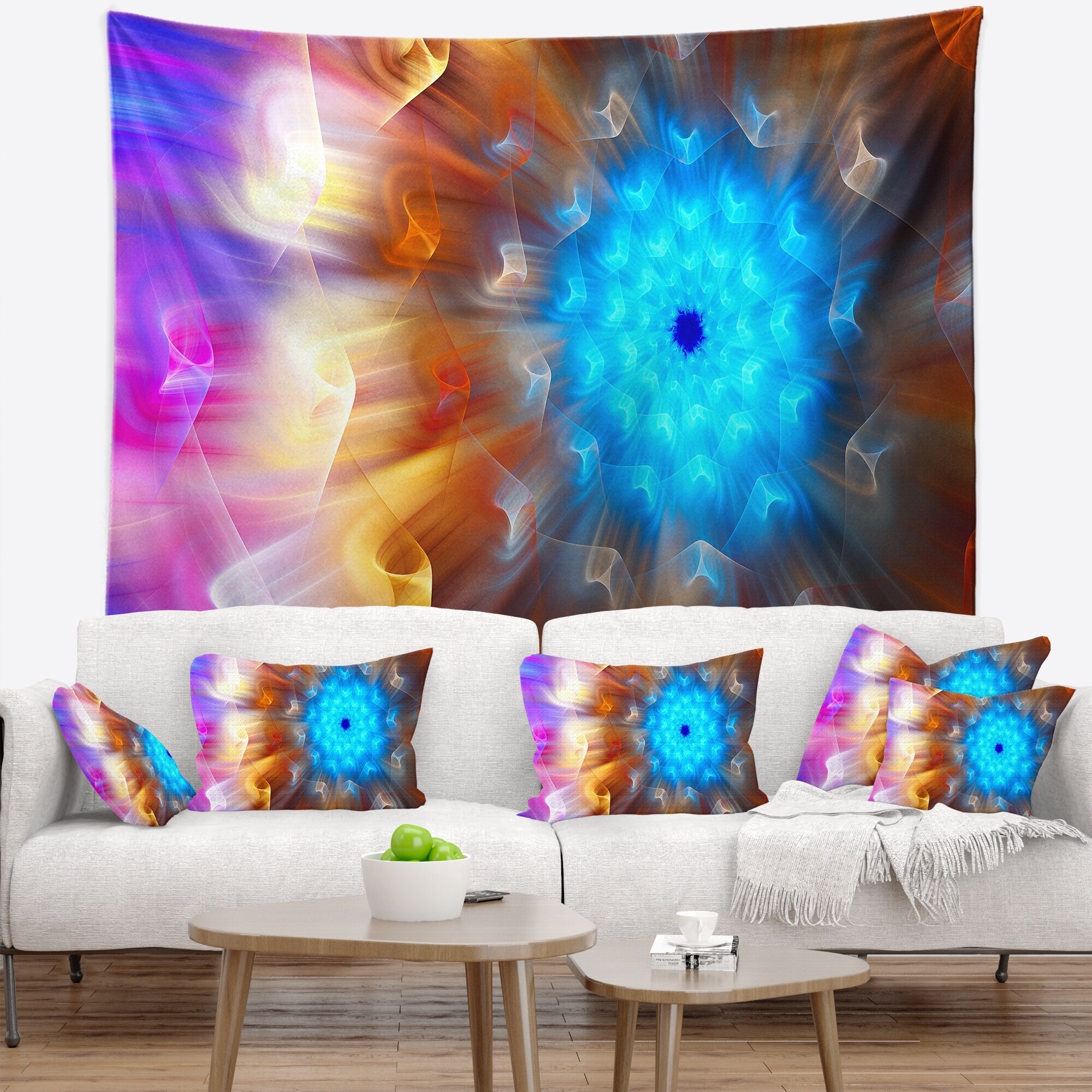 Designart 'Symmetrical Blue Fractal Flower' Abstract Wall Tapestry