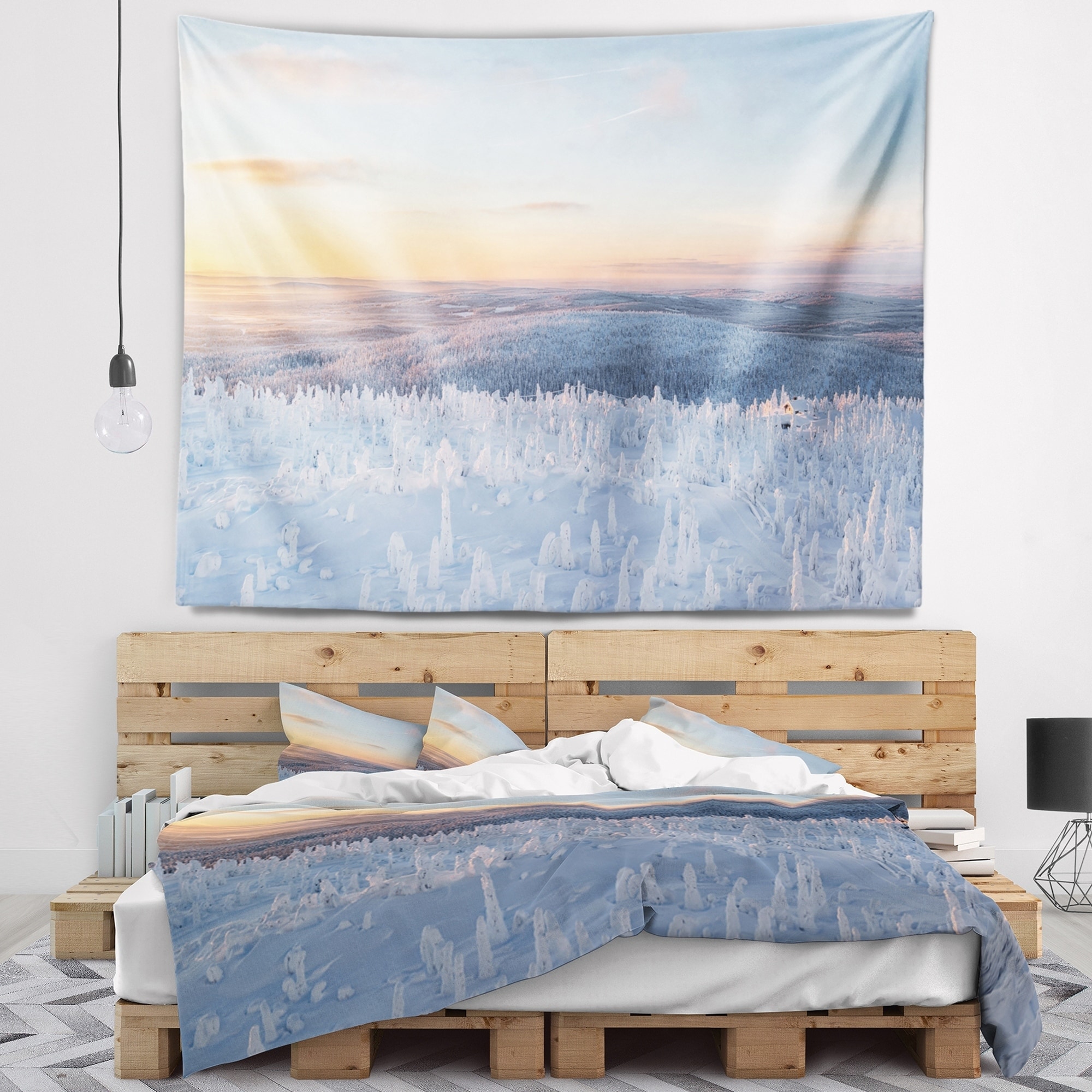 Designart 'Winter Landscape in Lapland' Landscape Wall Tapestry