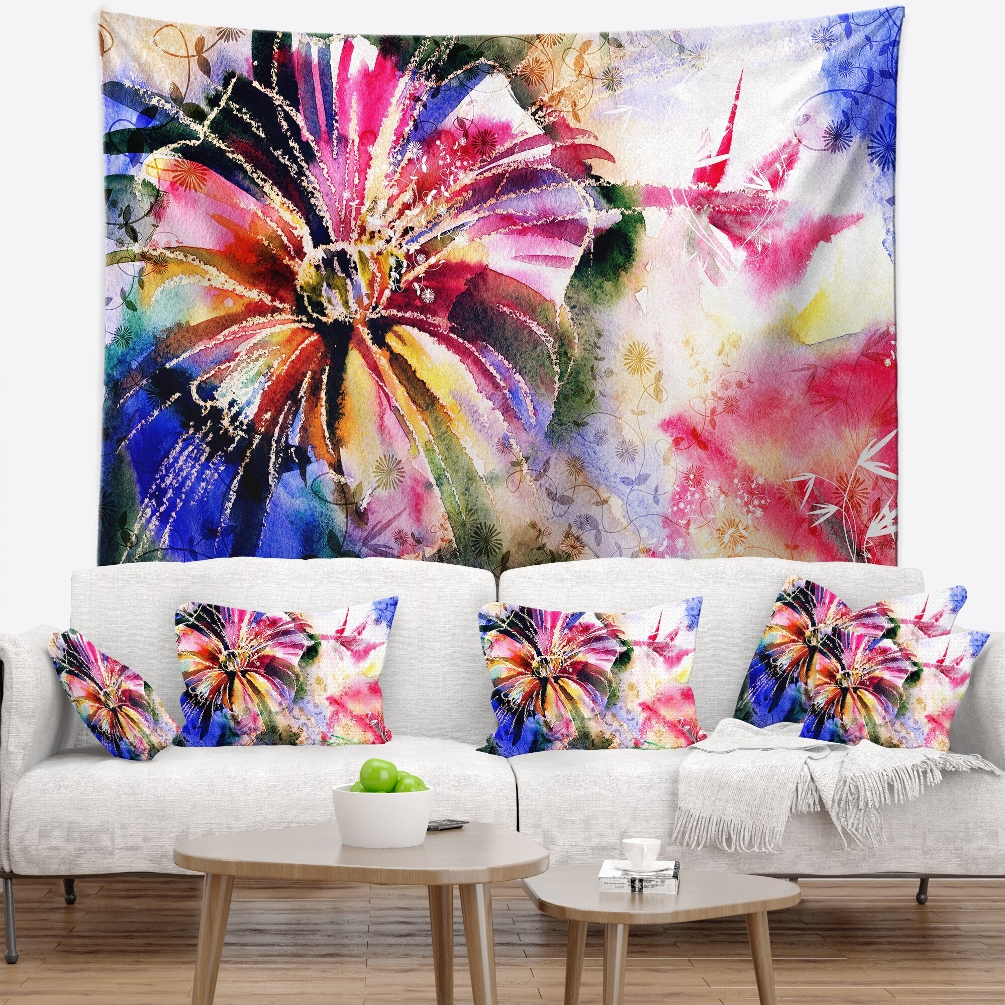 Designart 'Multi Color Exotic Flower Petals' Floral Wall Tapestry