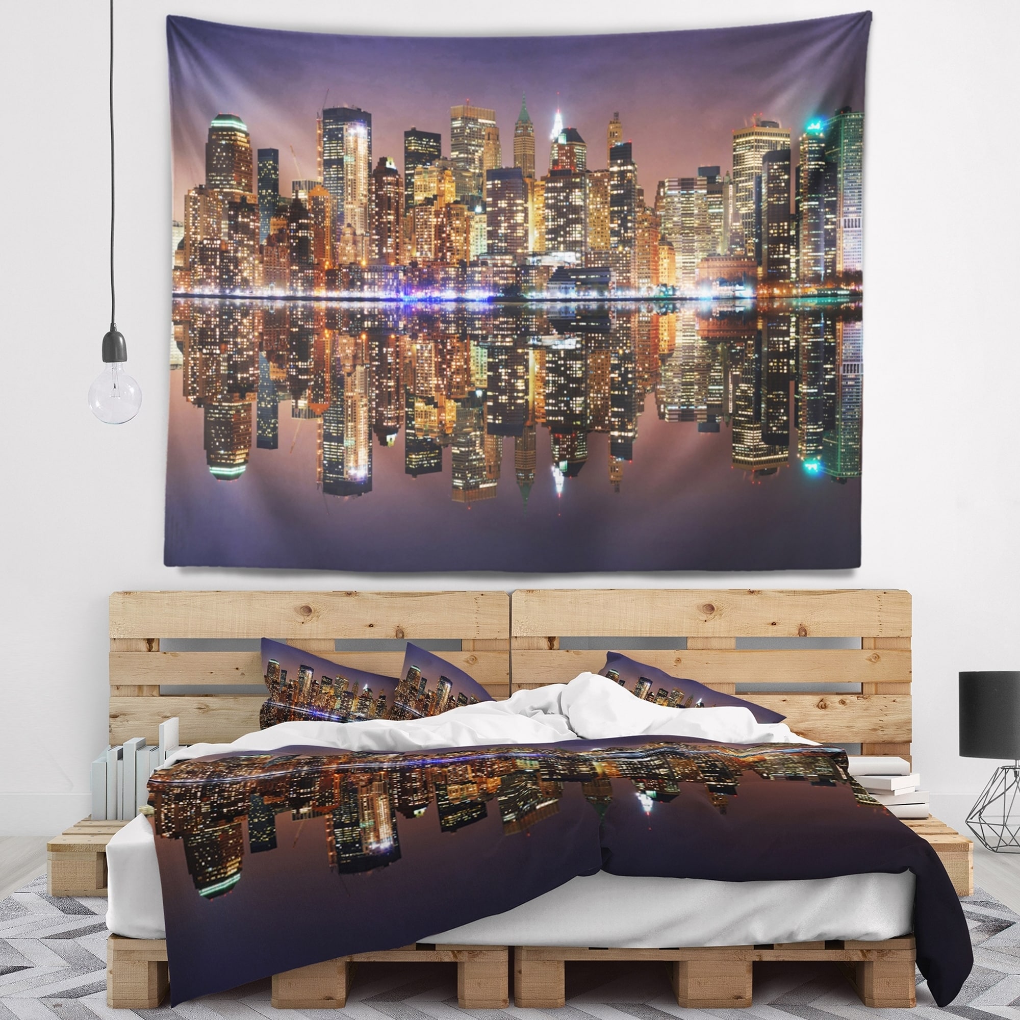 Designart 'Manhattan with Lights and Reflections' Wall Tapestry