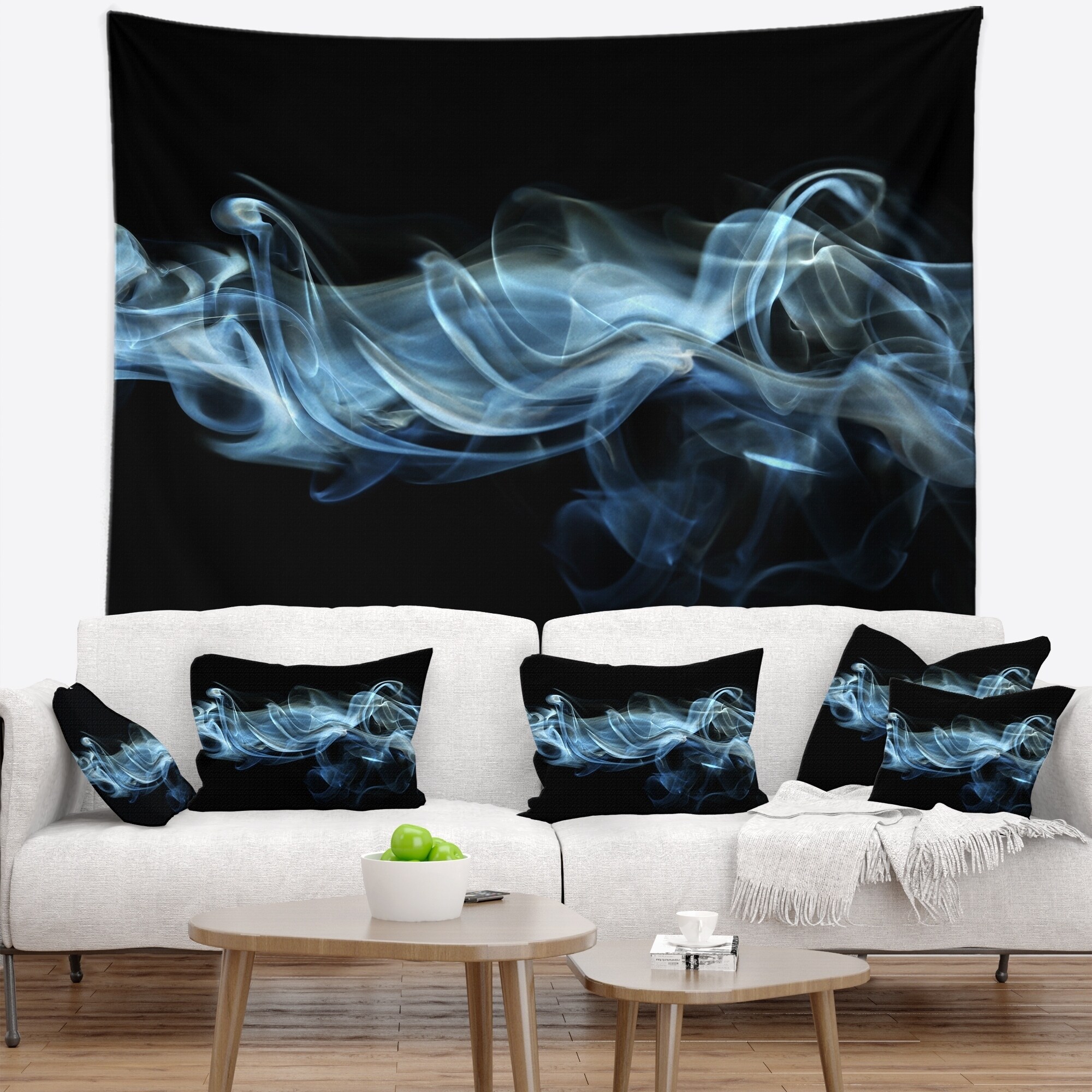 Designart 'Blue Smoke in Black' Abstract Wall Tapestry