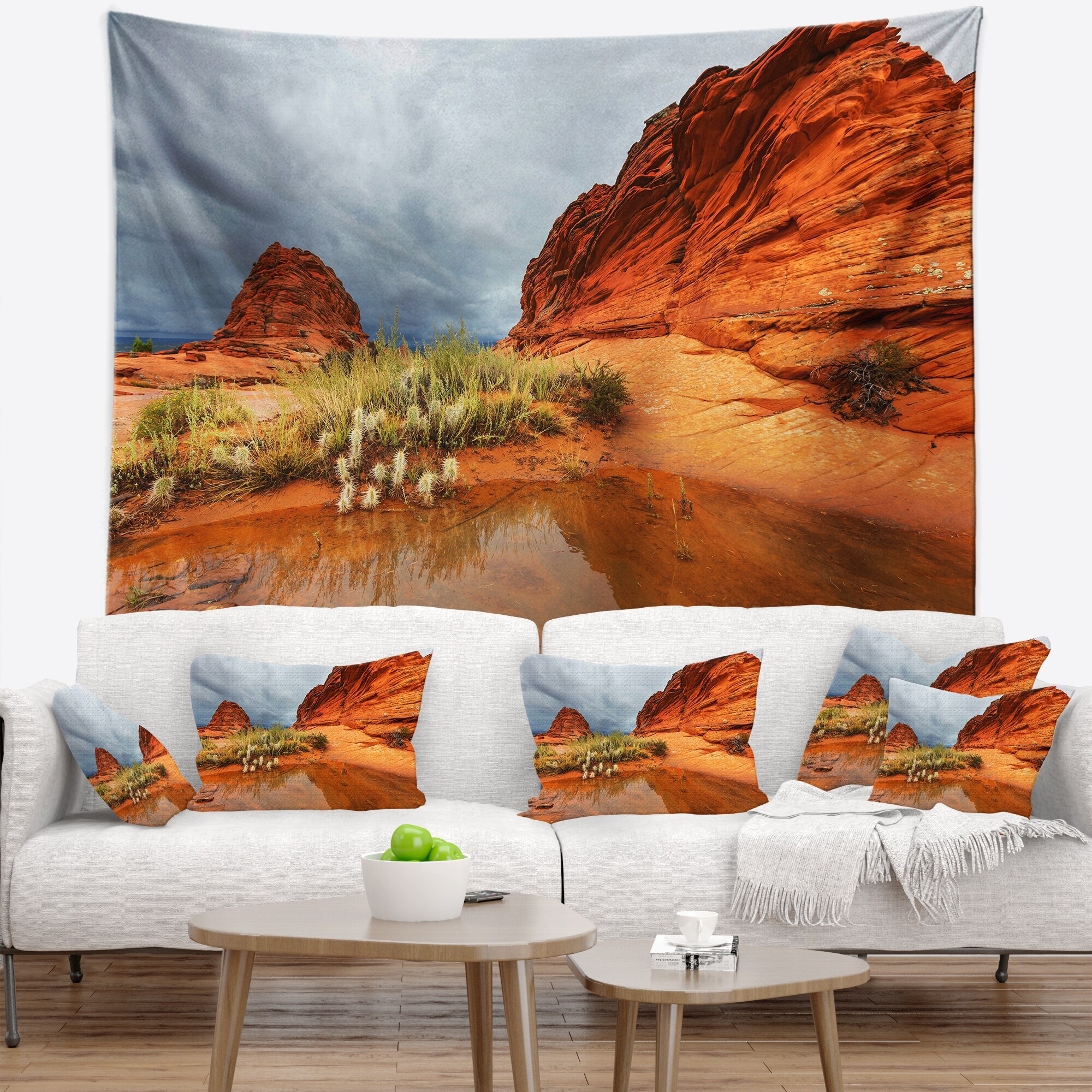 Designart 'Clear Lake Vermillion Cliffs' Landscape Wall Tapestry