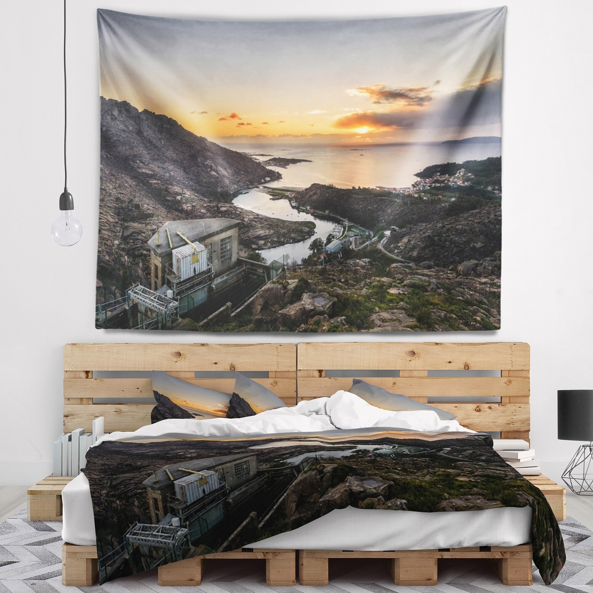 Designart 'Ezaro Panorama Galicia Spain' Landscape Wall Tapestry