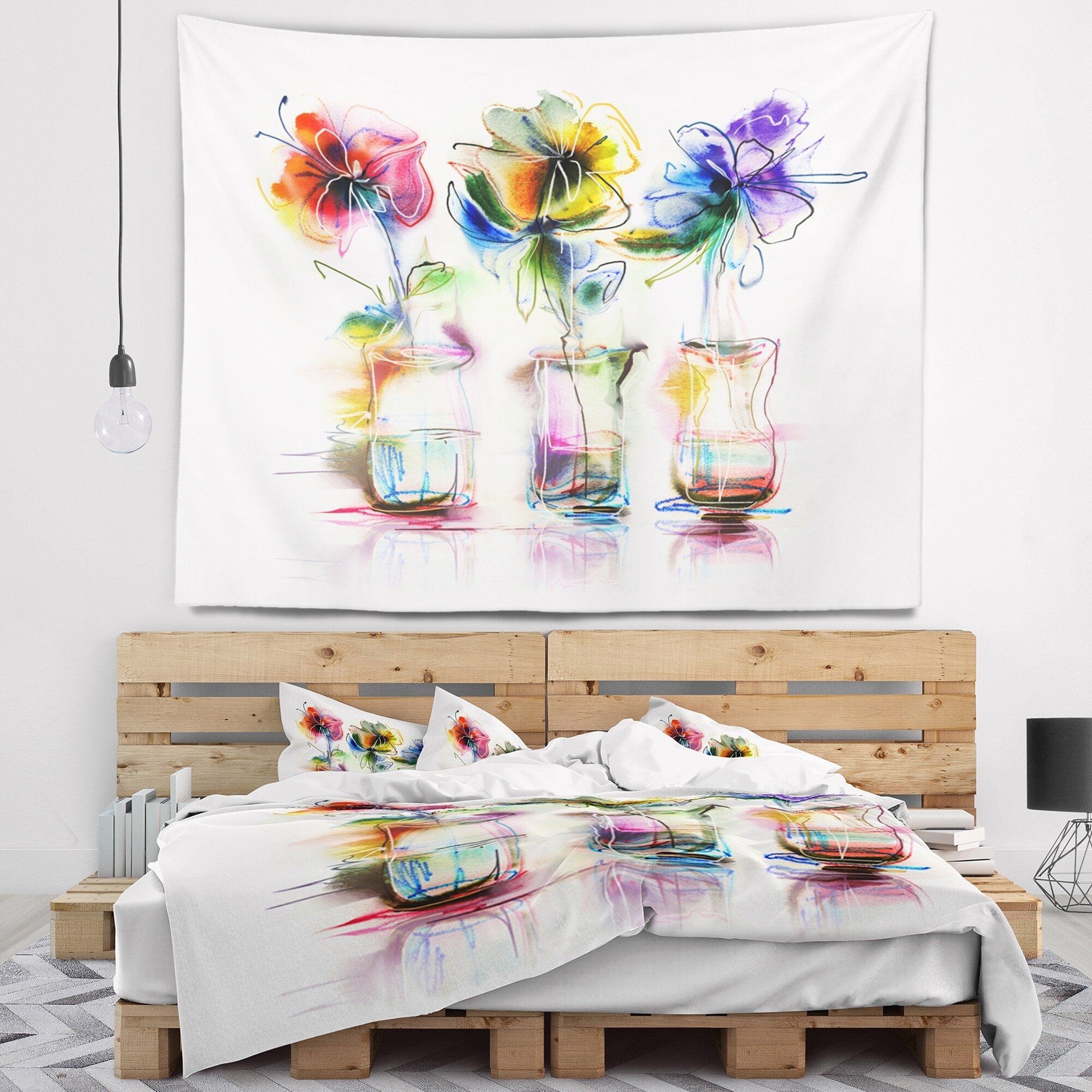 Designart 'Abstract Flowers in Glass Vases' Floral Wall Tapestry