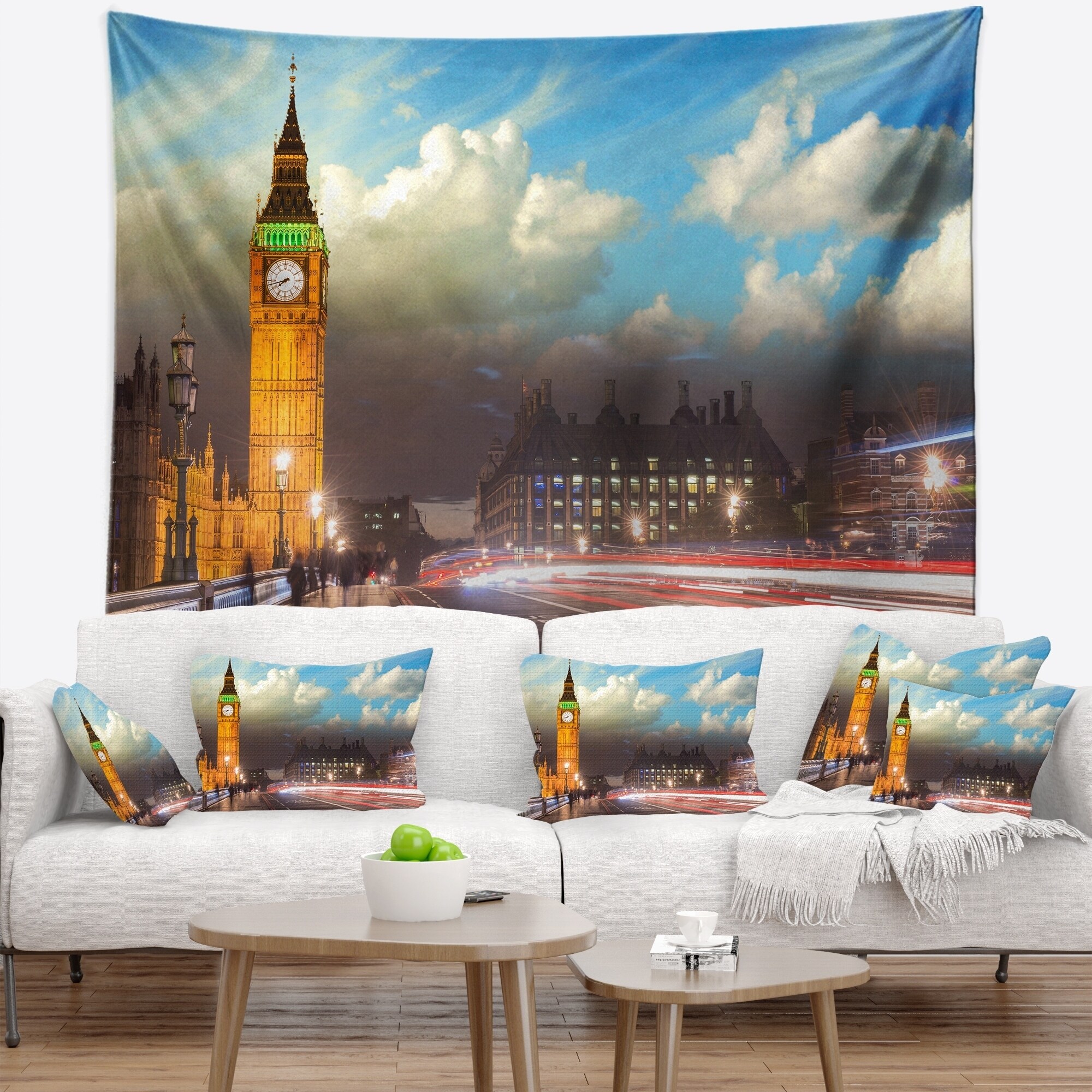 Designart 'Big Ben UK from Westminster Bridge' Cityscape Photo Wall Tapestry