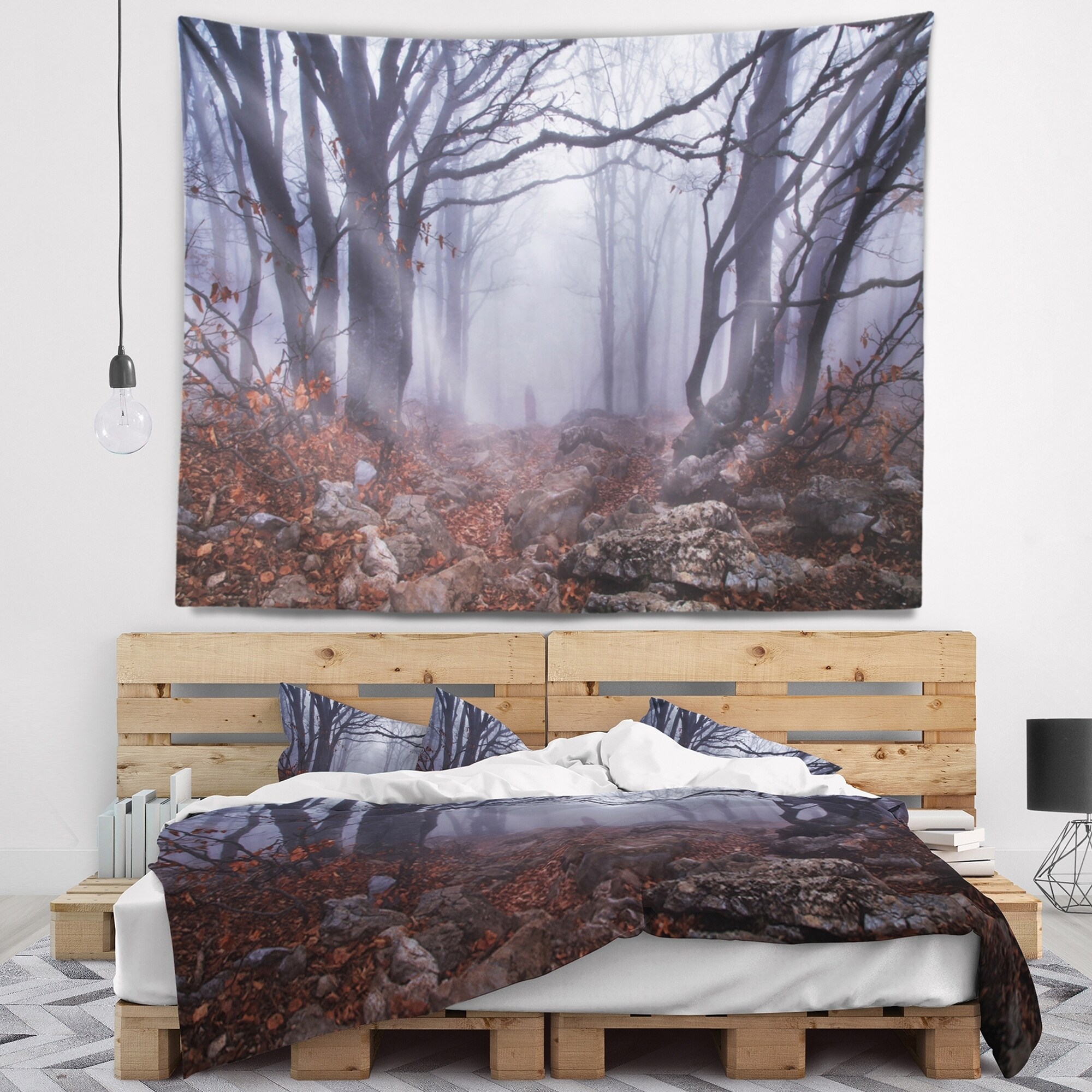 Designart 'Dark Foggy Forest in Autumn' Landscape Photography Wall Tapestry