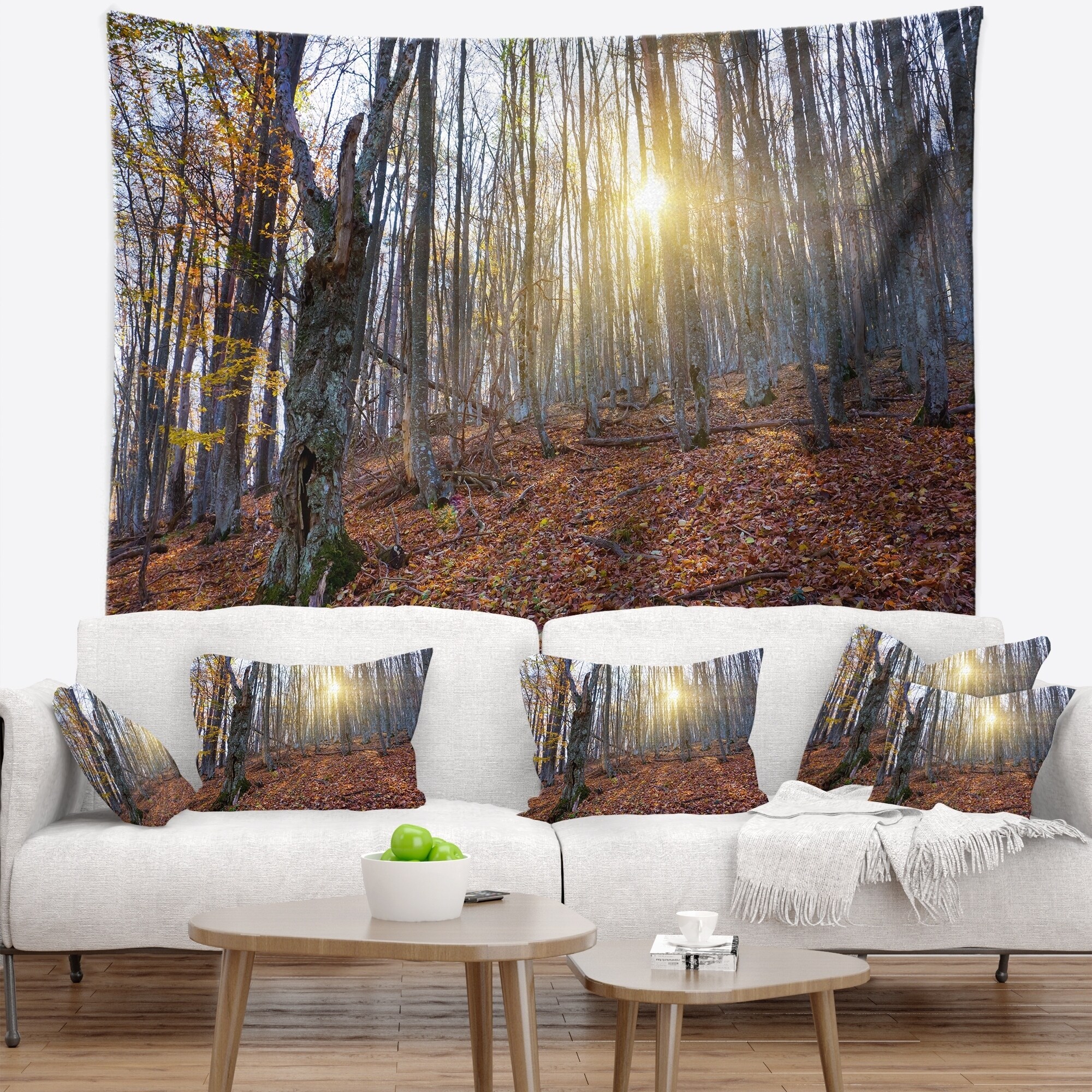 Designart 'Setting Sun in Dense Fall Forest' Modern Forest Wall Tapestry