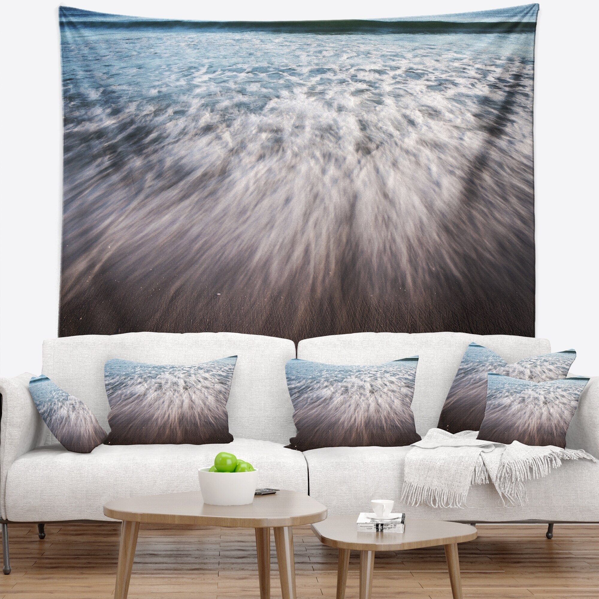 Designart 'Ocean Beach Water Motion' Seascape Wall Tapestry