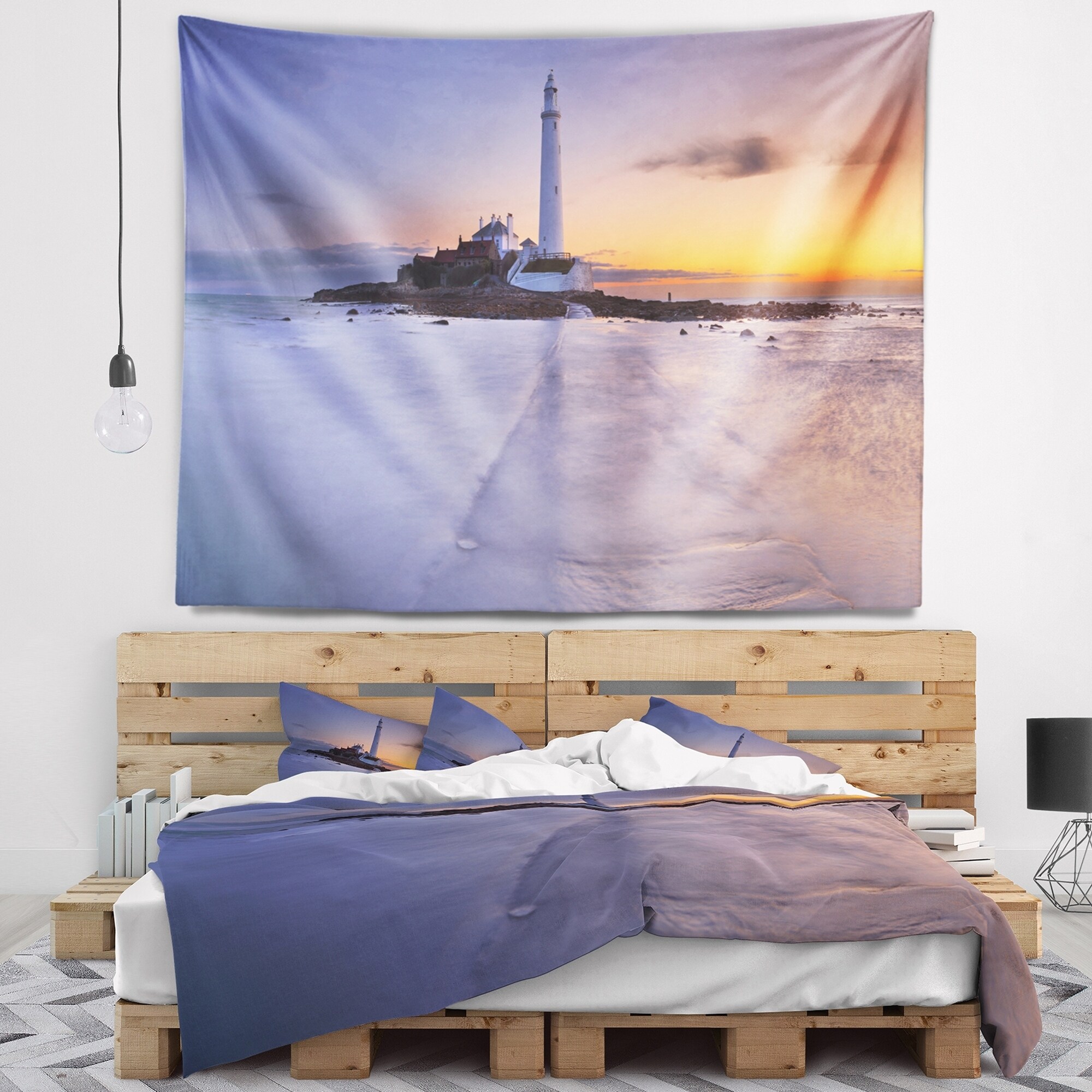Designart 'Sunrise Over St. Mary s Lighthouse' Modern Seascape Wall Tapestry