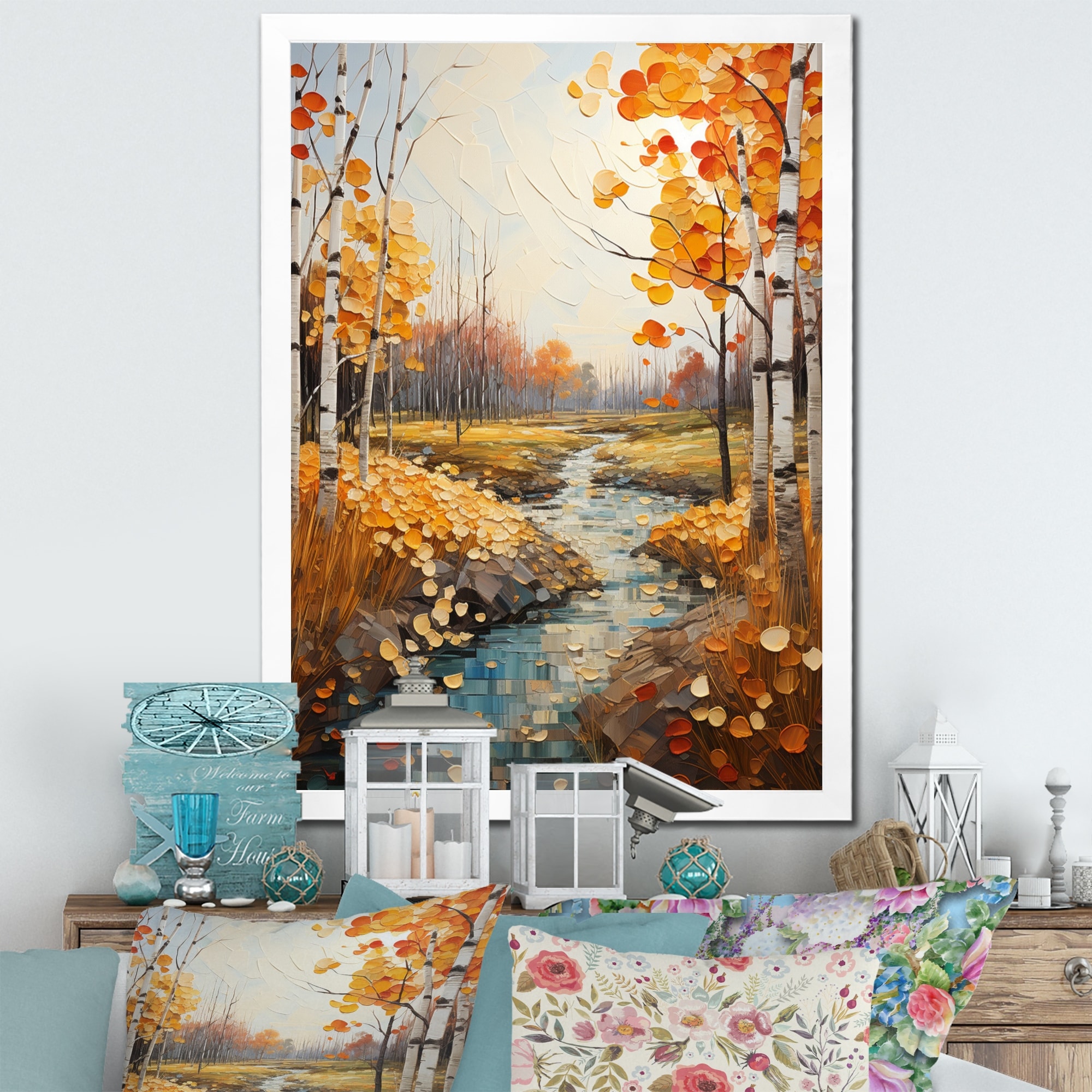 Designart "Birch Woods Autumn Tapestry VII" Tree Birch Framed Canvas Prints