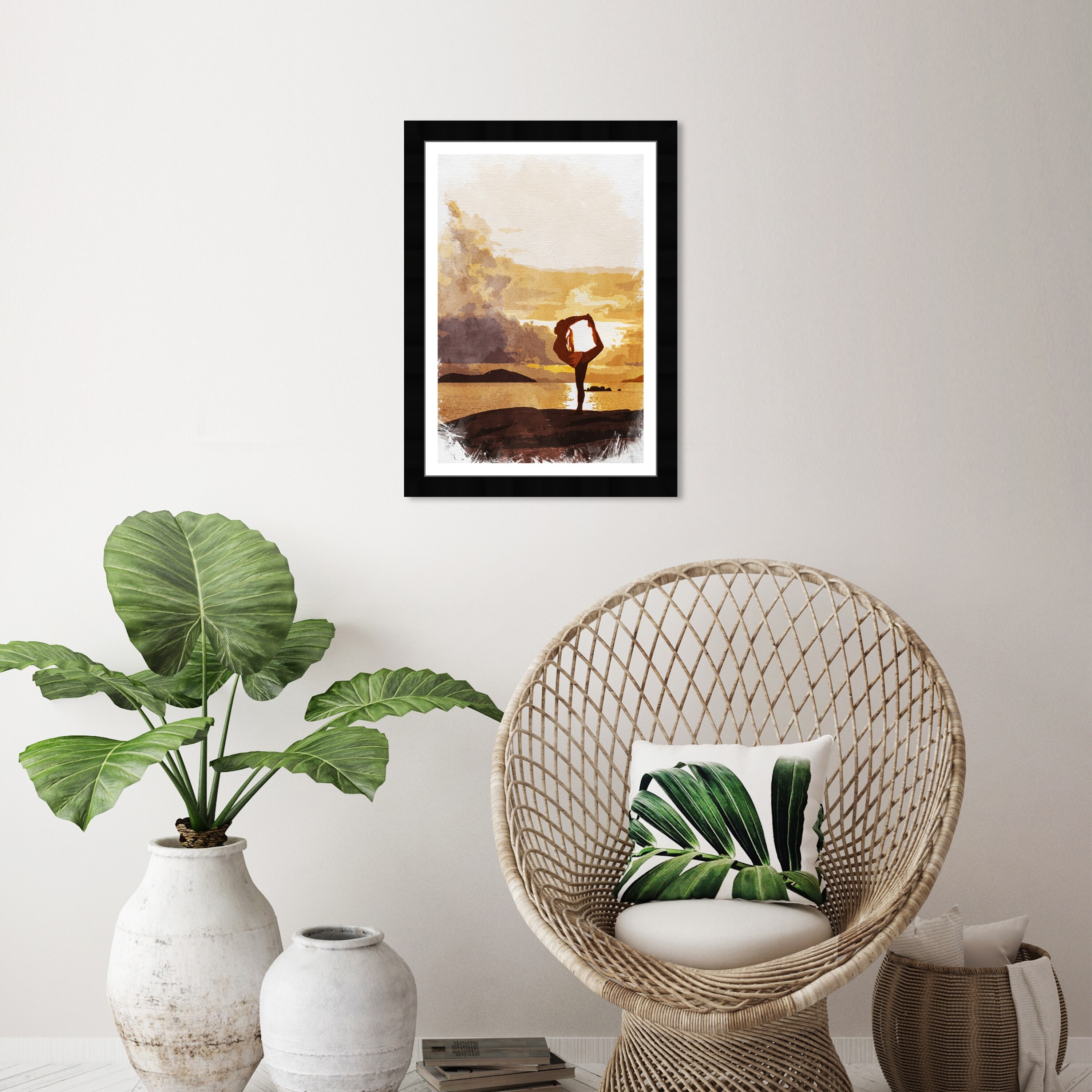 Wynwood Studio Sports and Teams Framed Wall Art Prints 'Ballance' Yoga Home Décor - Yellow, White