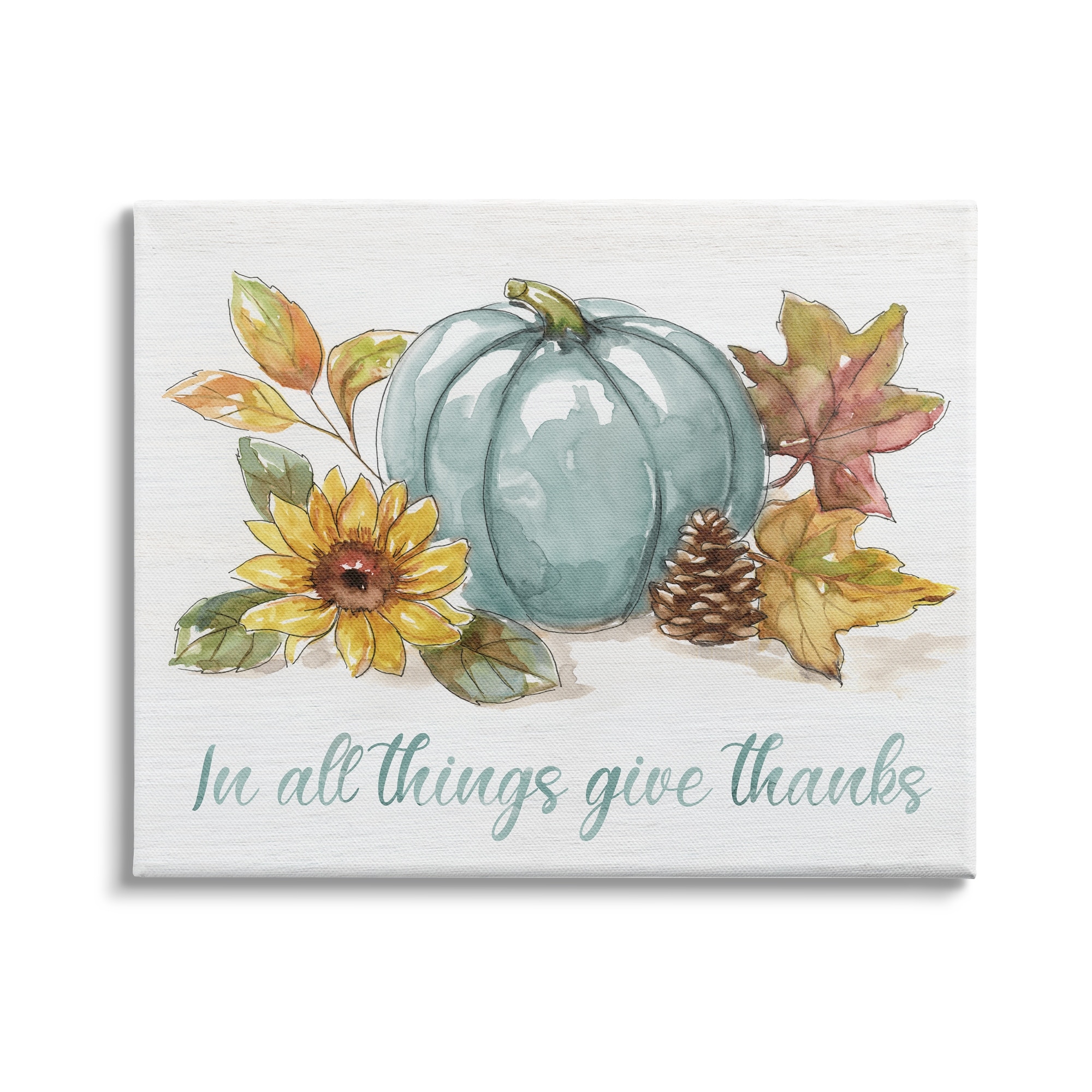 Stupell in All Things Give Thanks Sentiment Blue Pumpkin Canvas Wall Art - White