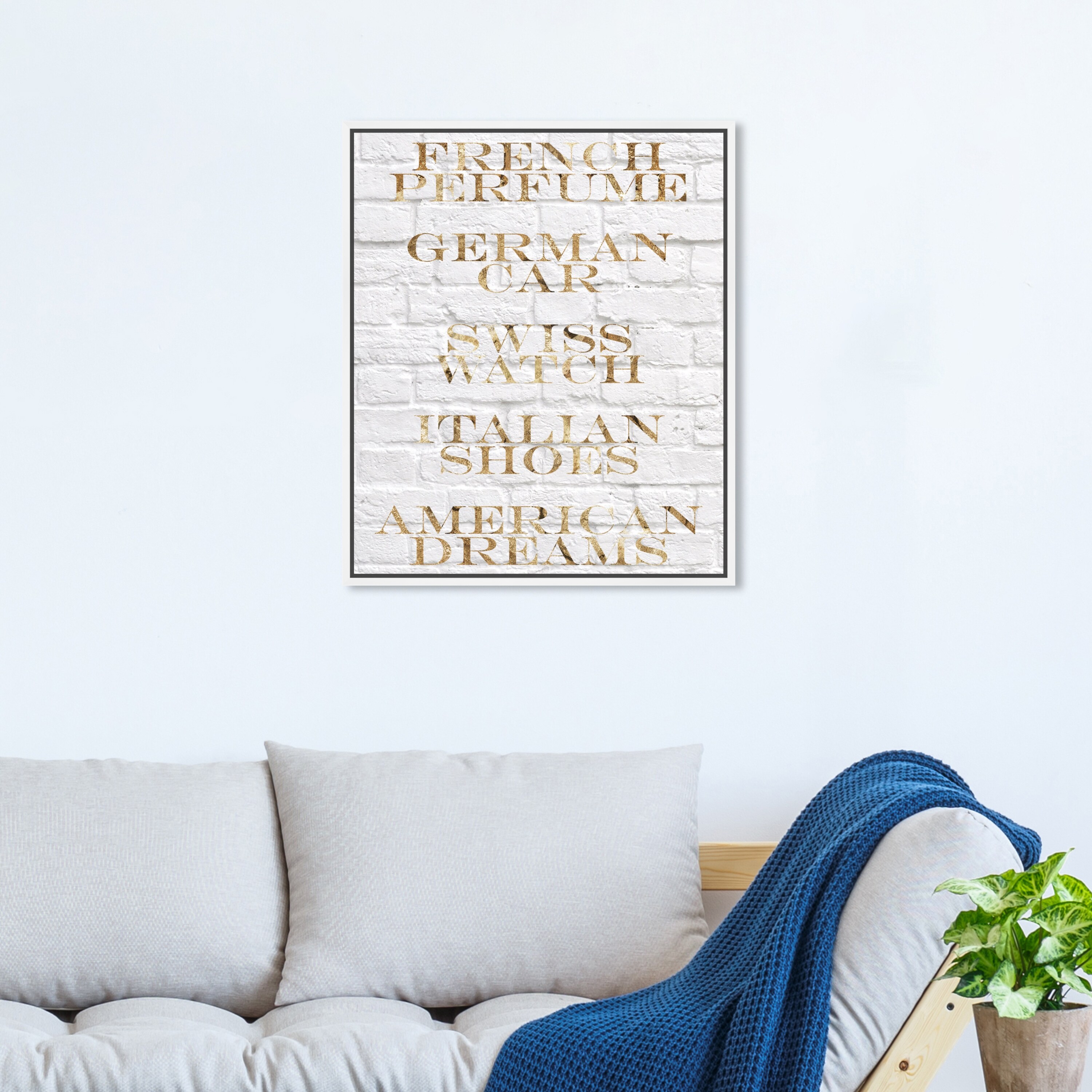 Oliver Gal 'French Perfume I' Typography and Quotes Wall Art Framed Canvas Print Travel Quotes and Sayings - Gold, White