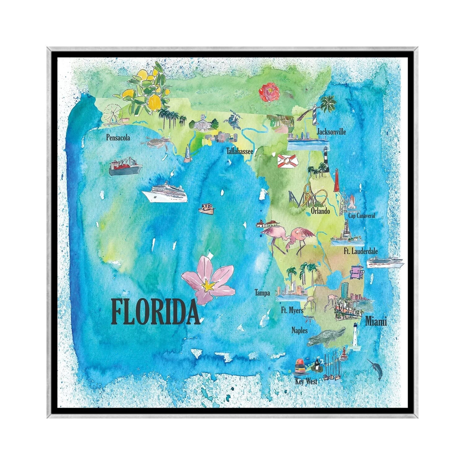 iCanvas "USA, Florida Travel Poster" by Markus & Martina Bleichner Framed Canvas Print