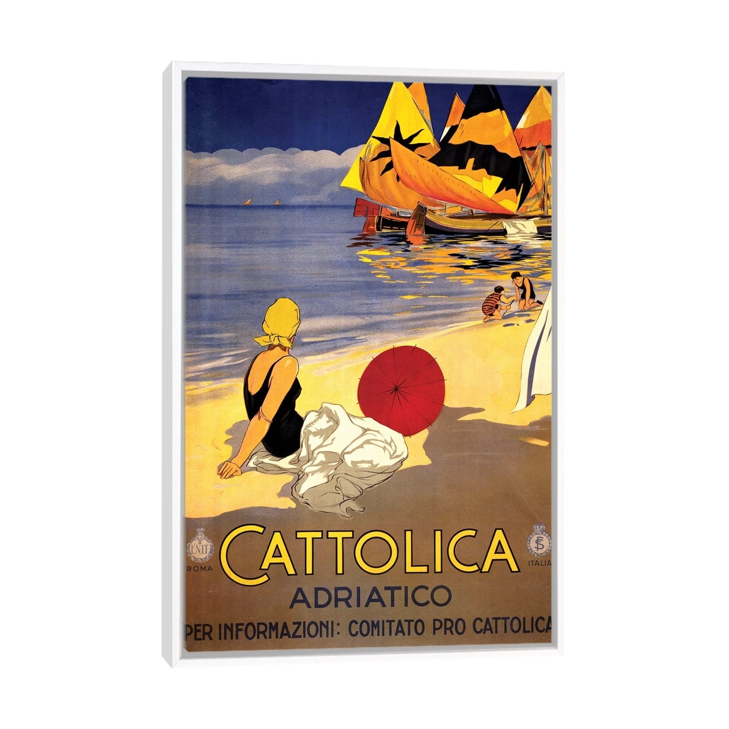 iCanvas "Cattolica Adriatico, Vintage Italian Travel Poster c1920s" by Piddix Framed