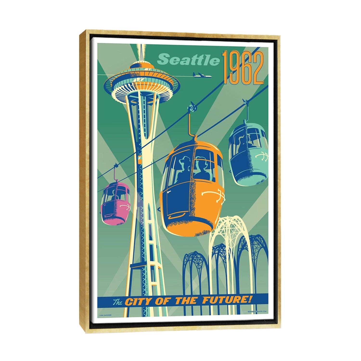 iCanvas "Seattle 1962 Travel Poster" by Jim Zahniser Framed Canvas Print