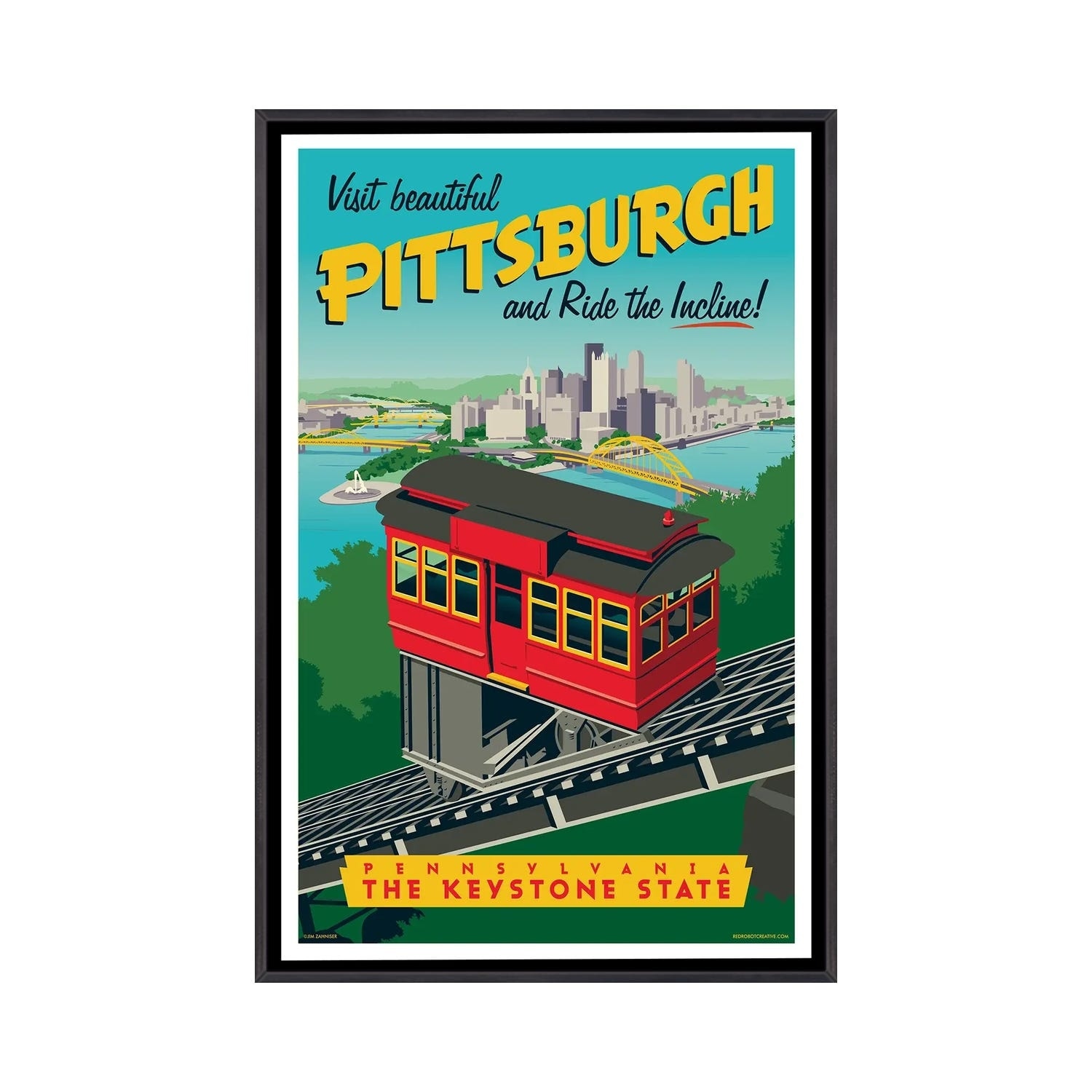 iCanvas "Pittsburgh Incline Travel Poster" by Jim Zahniser Framed